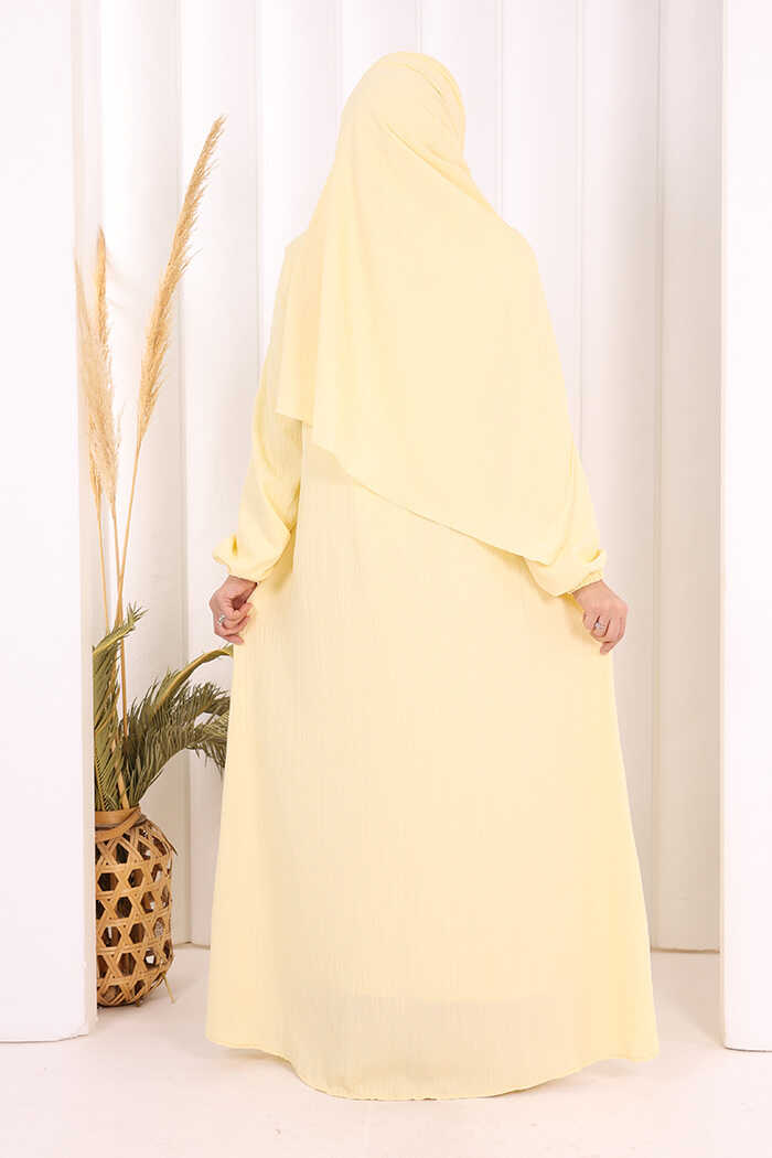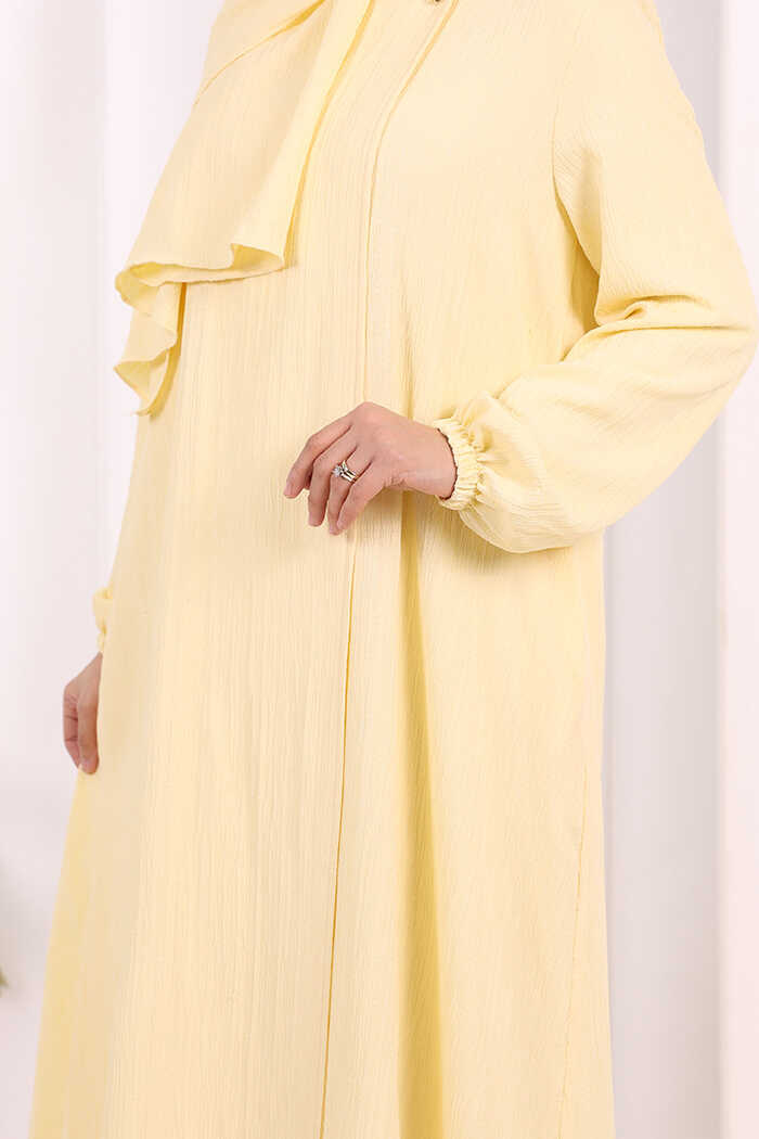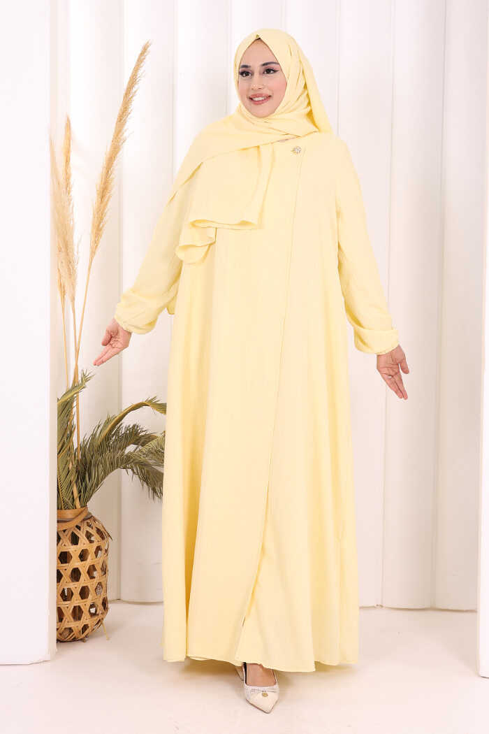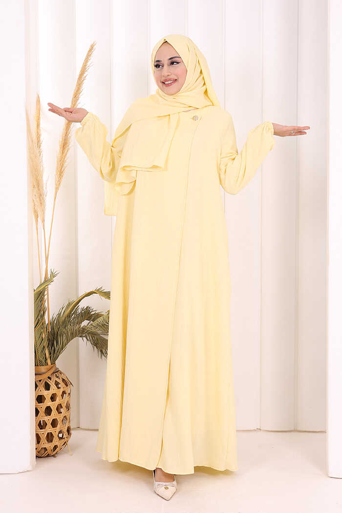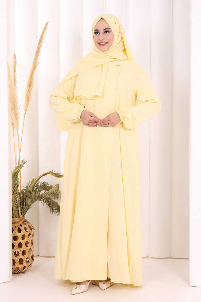 Düğme Detaylı Şallı Ferace 7058 Sarı