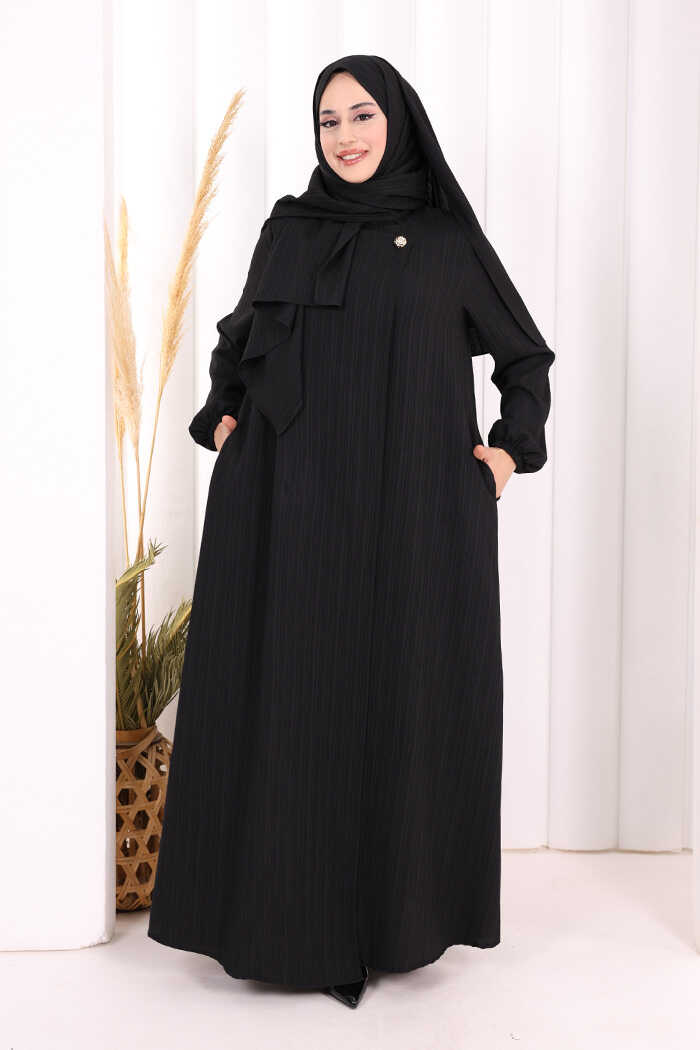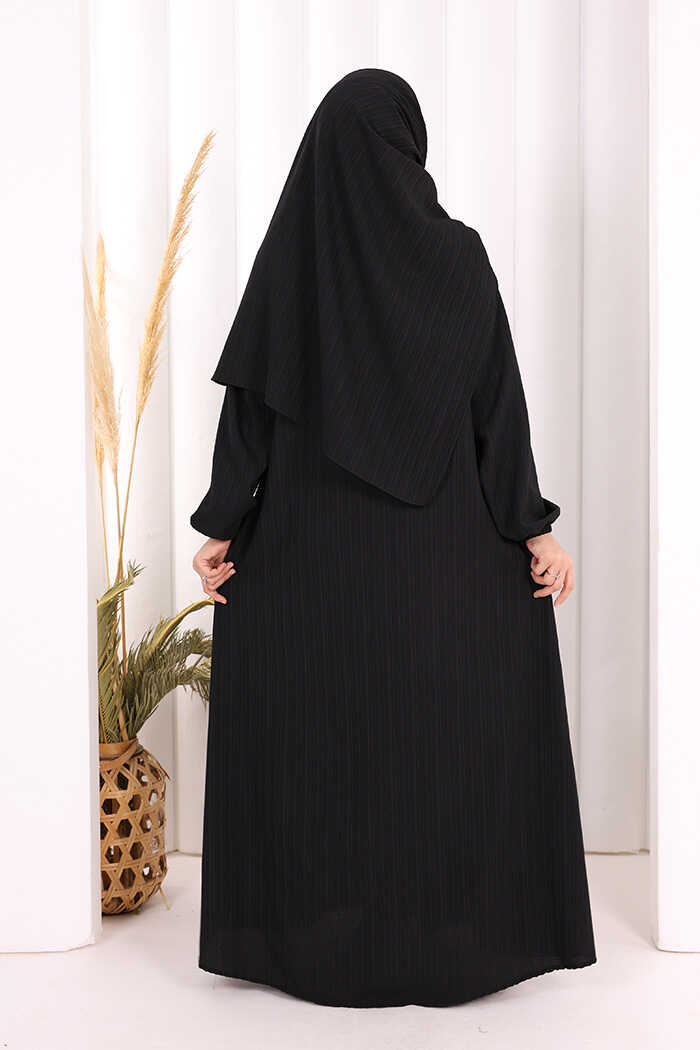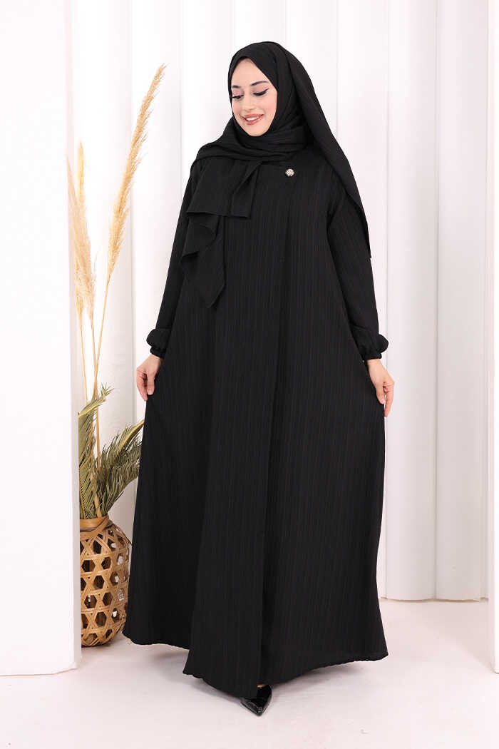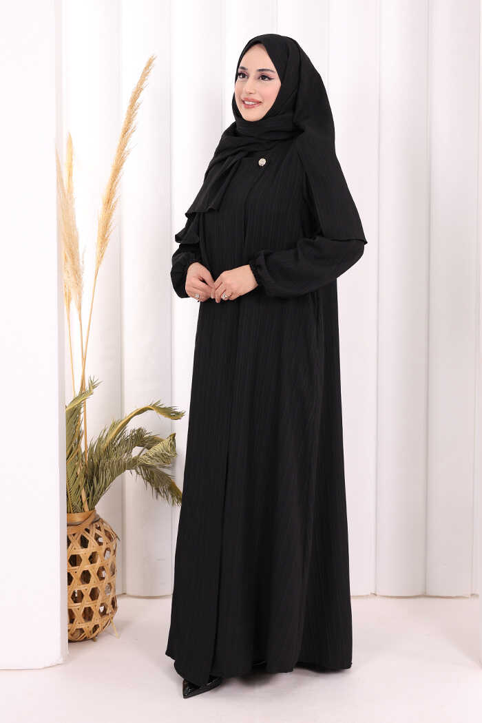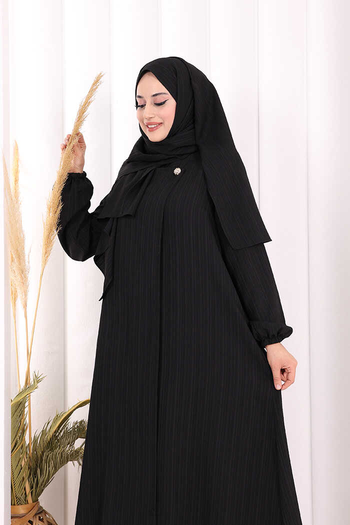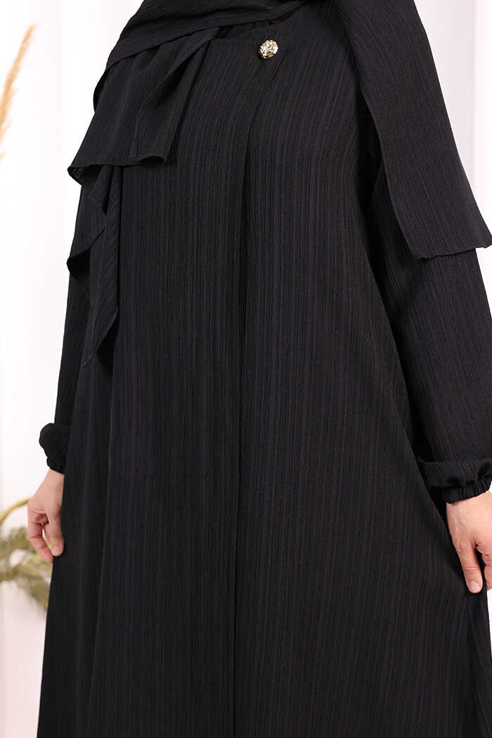 Düğme Detaylı Şallı Ferace 7058 Siyah
