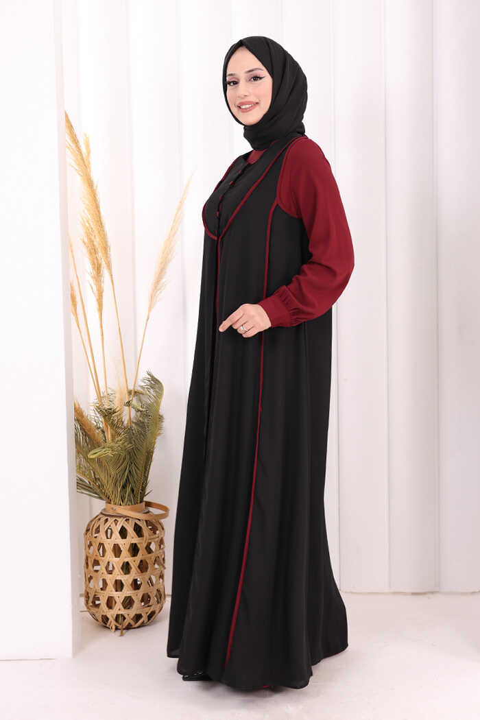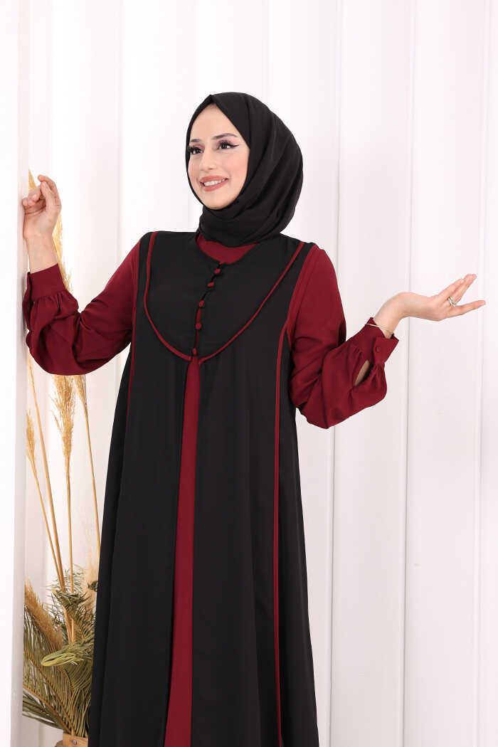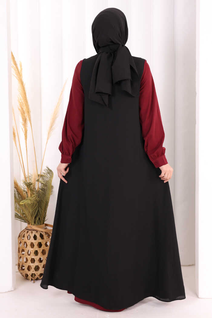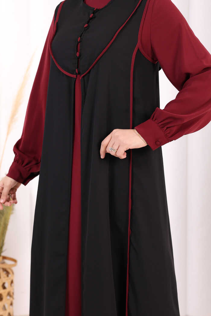 Düğme Detaylı Yelekli Elbise Takım 7060 Bordo
