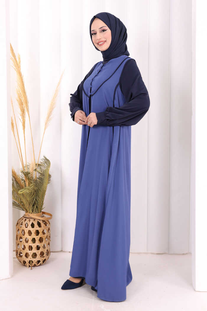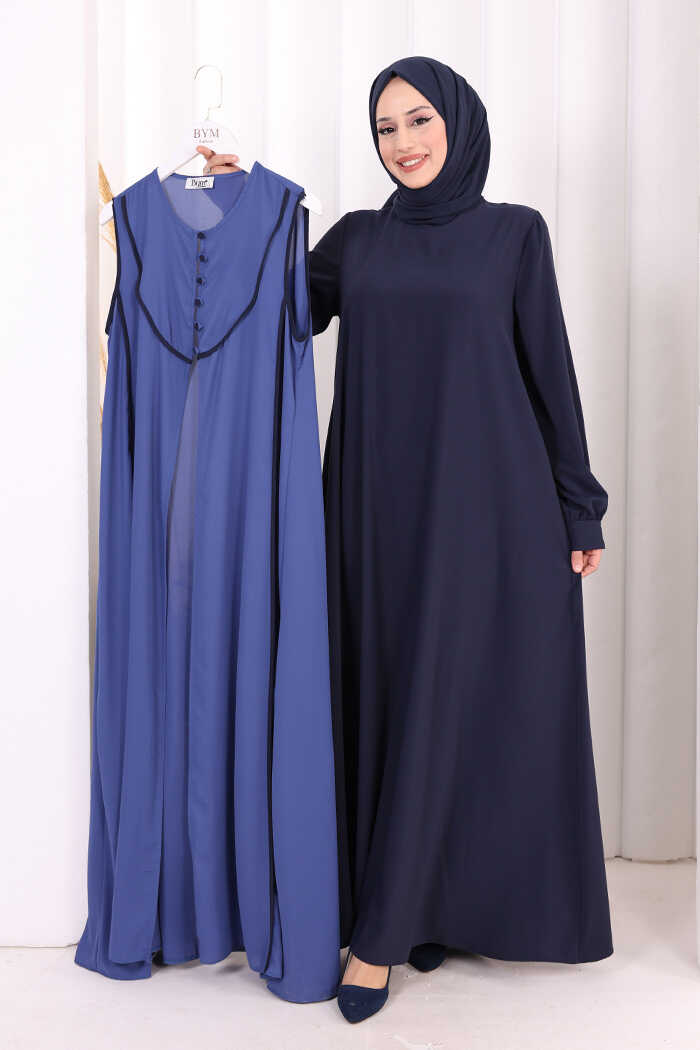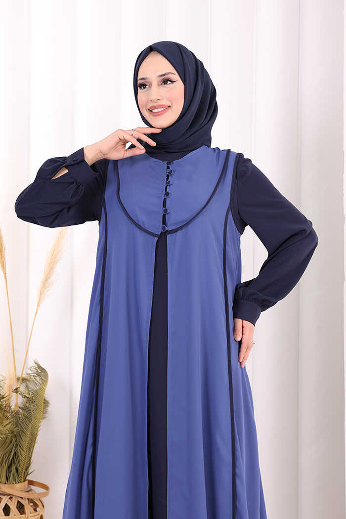 Düğme Detaylı Yelekli Elbise Takım 7060 Lacivert