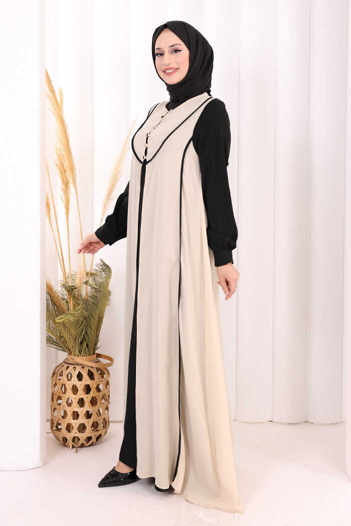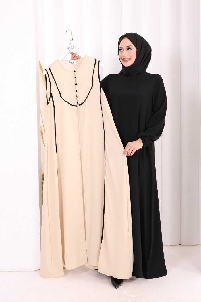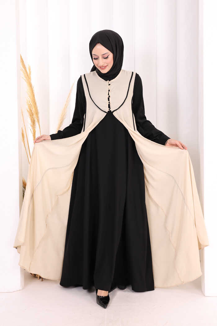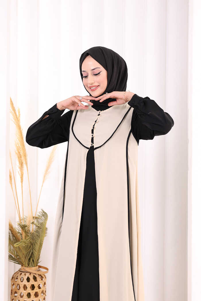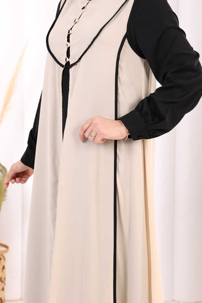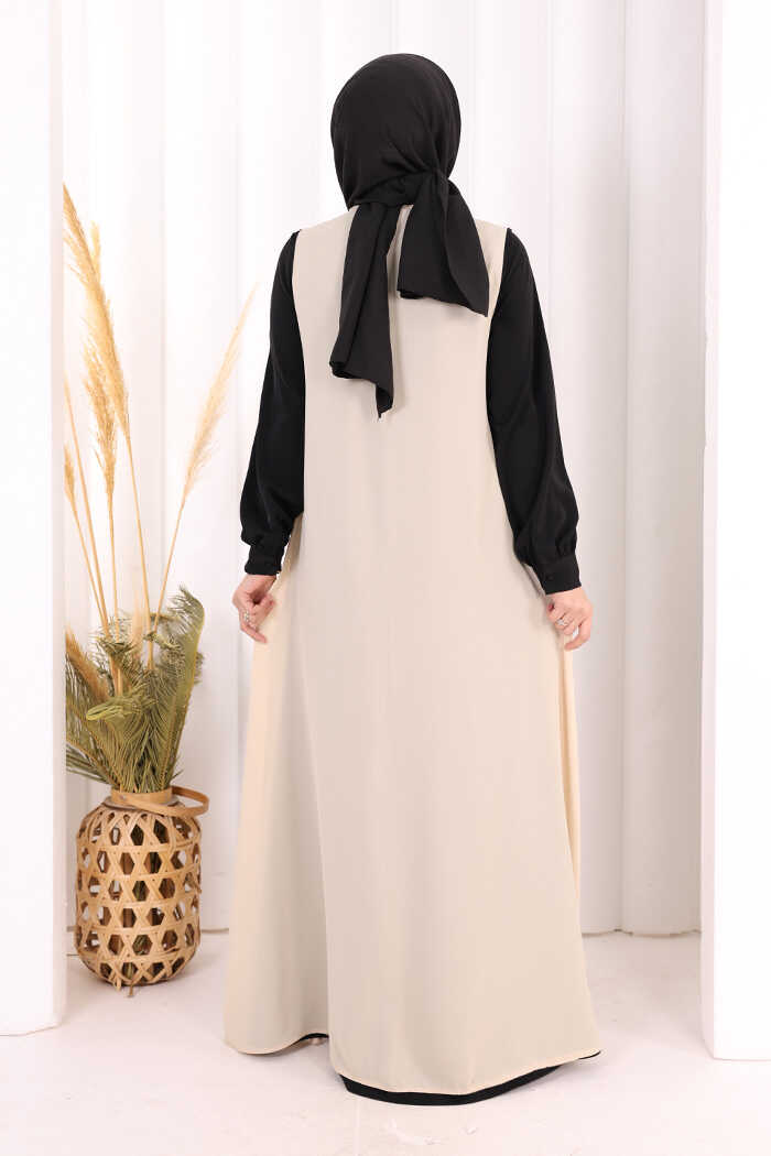 Düğme Detaylı Yelekli Elbise Takım 7060 Siyah
