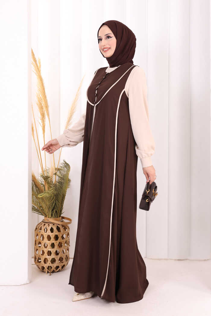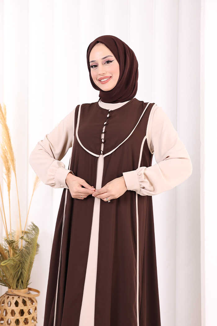 Düğme Detaylı Yelekli Elbise Takım 7060 Taş