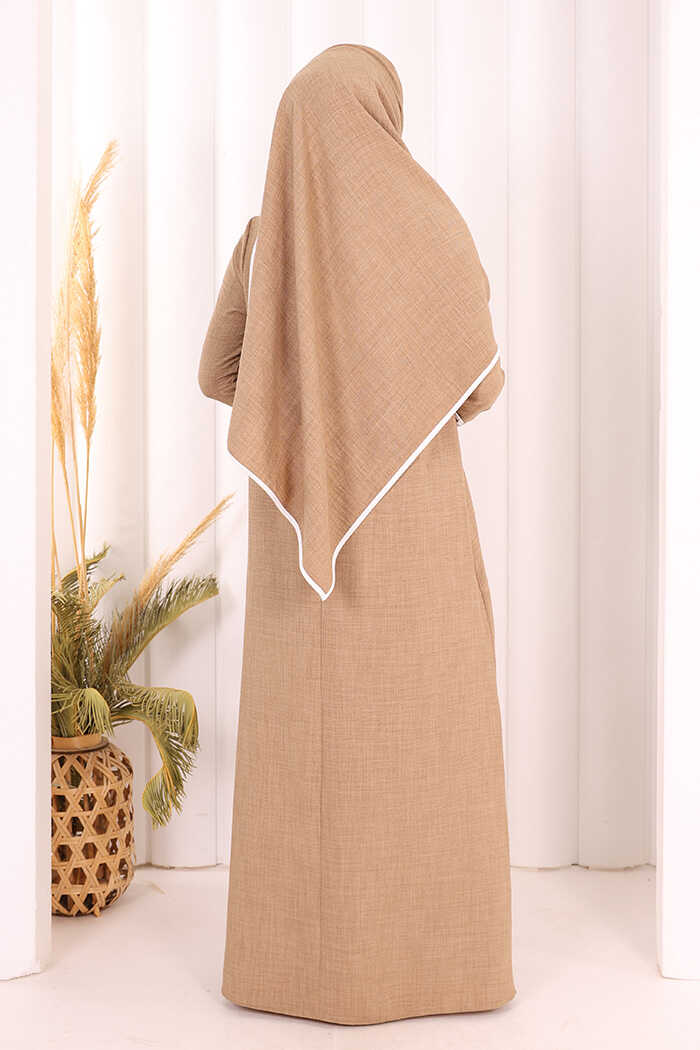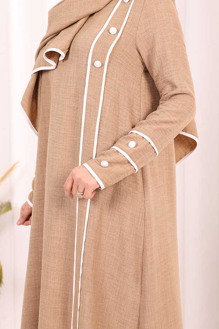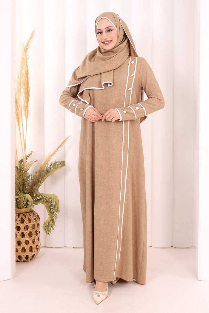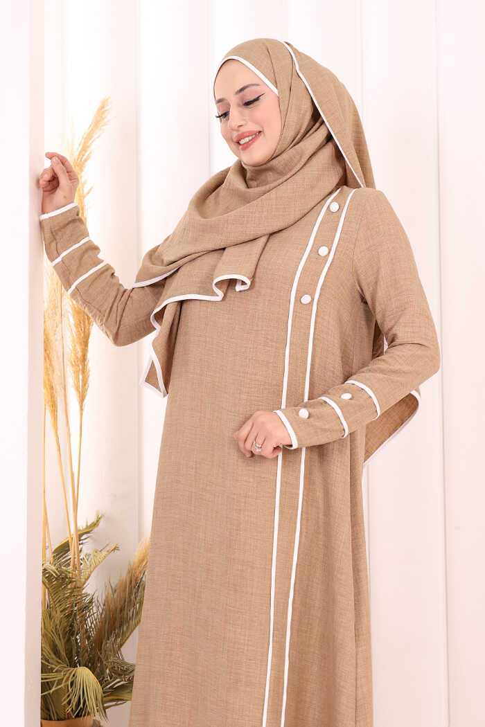 Düğme ve Şerit Detay Elbise Şal Hediye! 6060 Vizon
