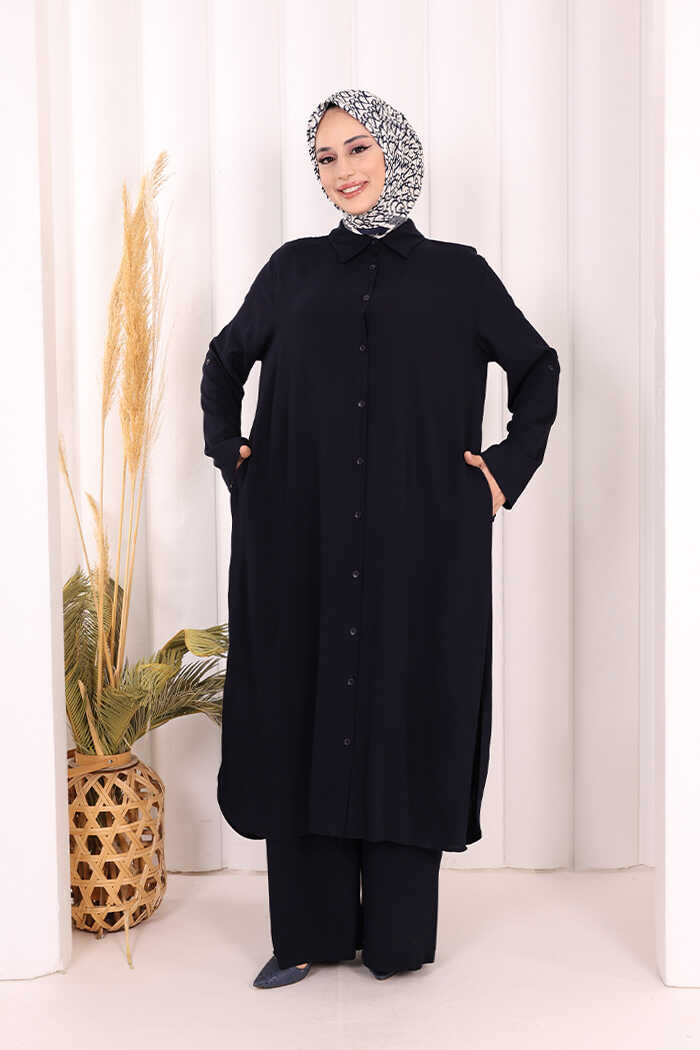 Hac Umre Düğmeli İkili Takım 6057 Lacivert