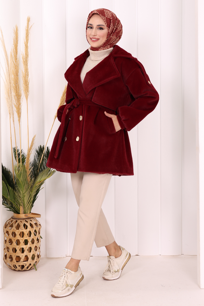 Düğmeli Kaban 70059 Bordo