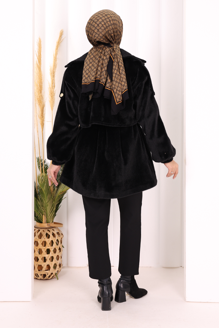 Düğmeli Kaban 70059 Siyah