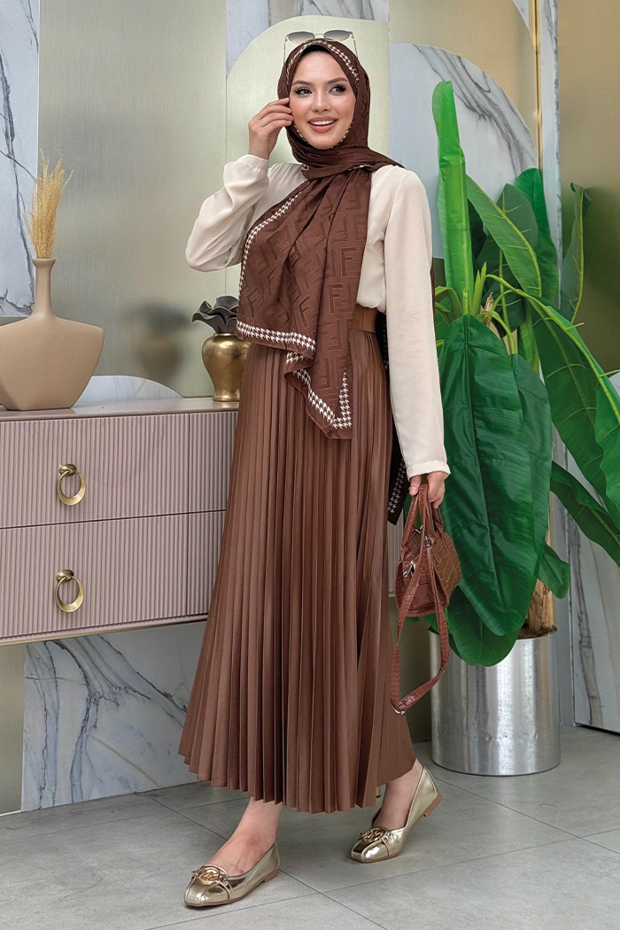 Beli Lastikli Piliseli Etek 1193 Taba