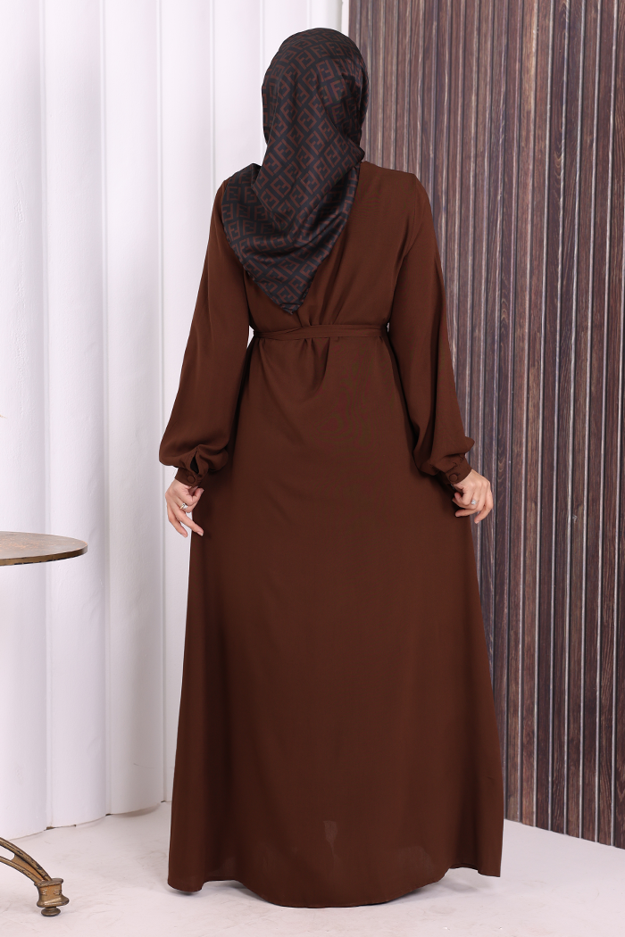 Boydan Düğmeli Ferace 6056 Kahverengi