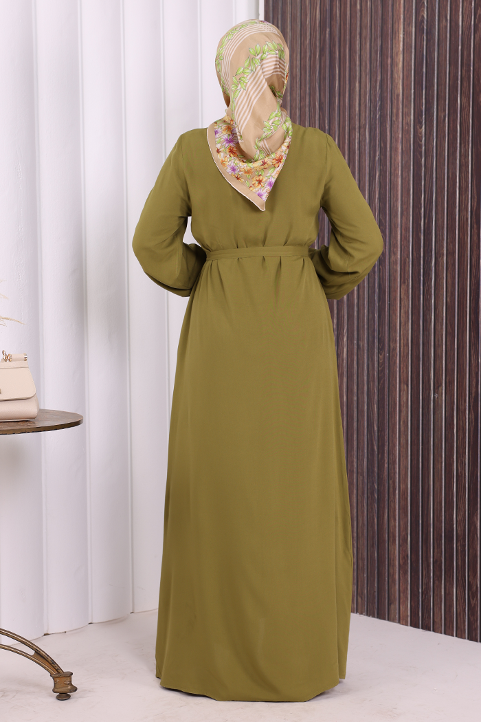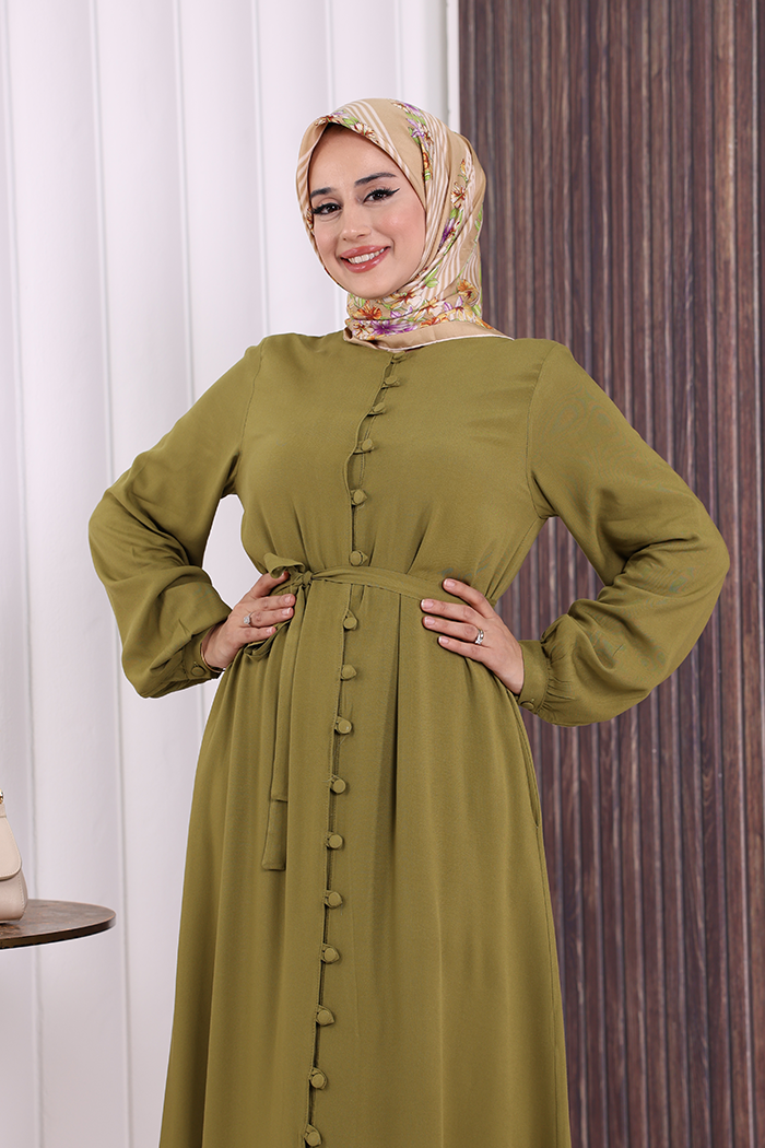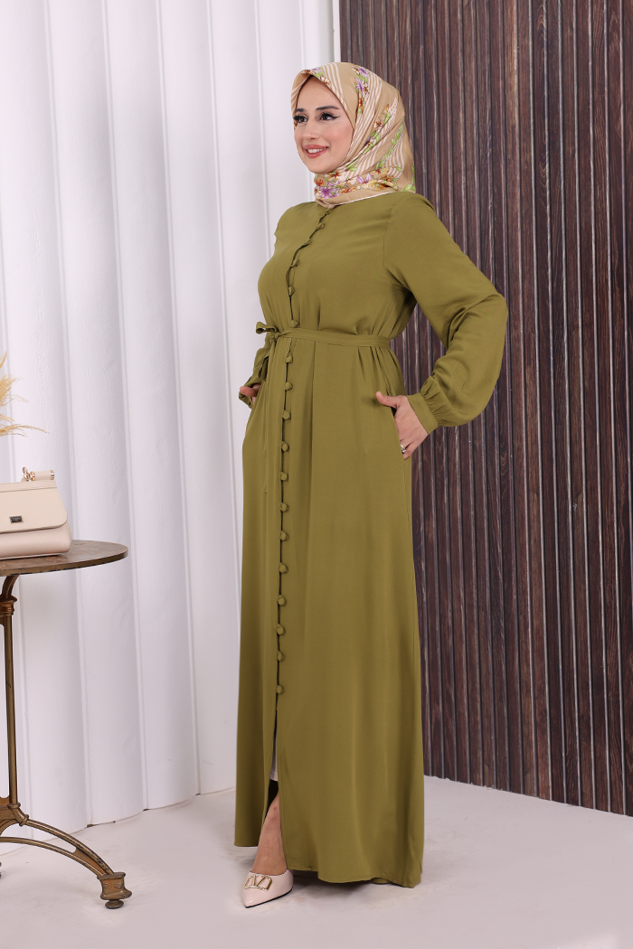 Boydan Düğmeli Ferace 6056 Yağ Yeşili