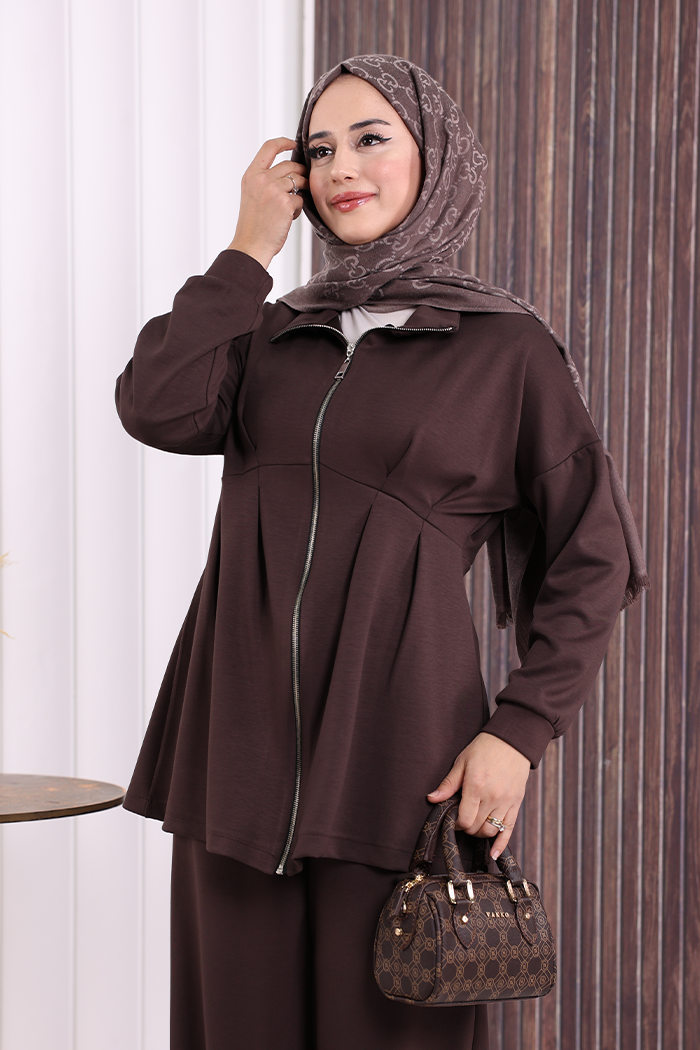 Fermuarlı İkili Oysho Takım 6058 Kahverengi