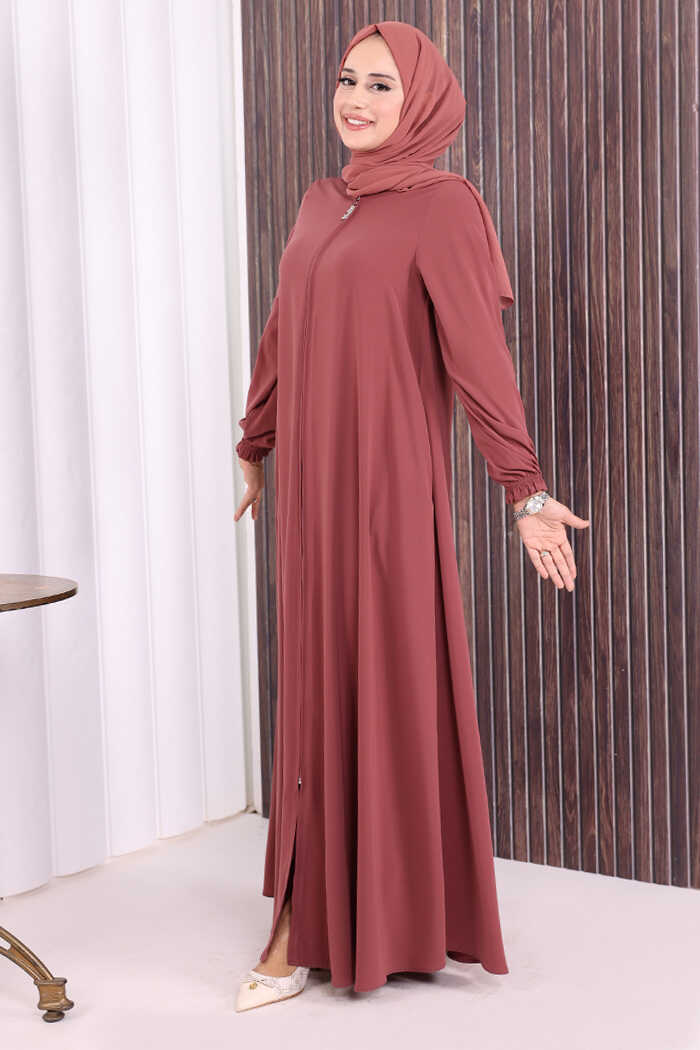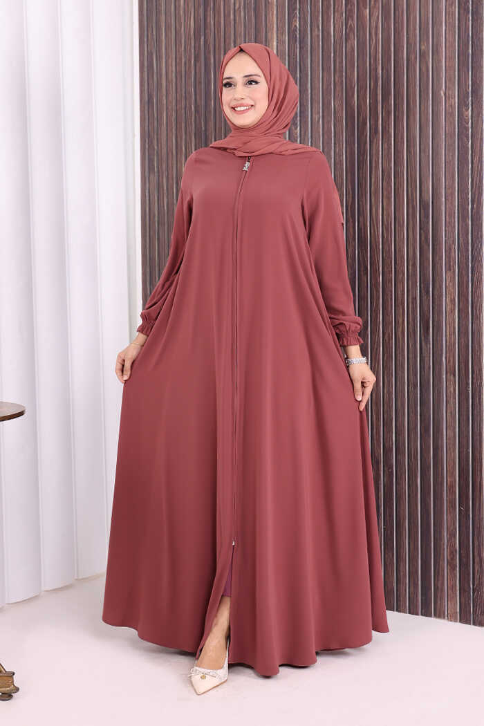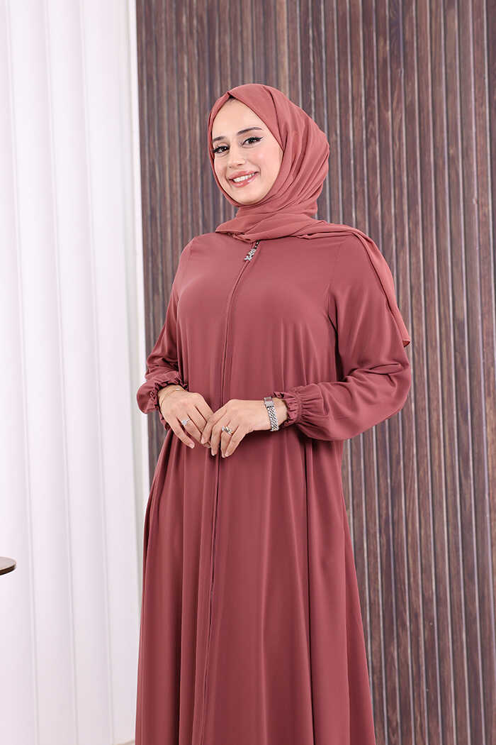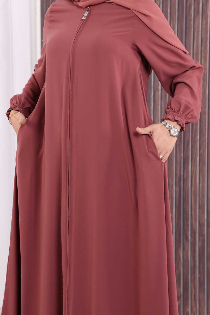 Fermuarlı Kol Manşetleri Büzgülü Mevlana Ferace 6007 Pudra