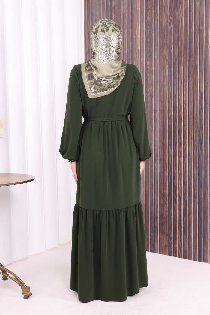 Fermuarlı Kol Manşetleri Lastikli Fırfırlı Elbise 6001 Haki