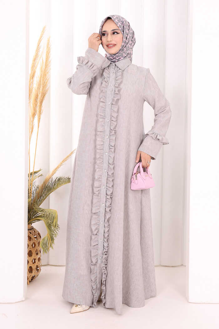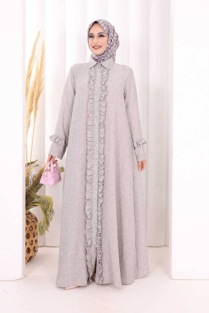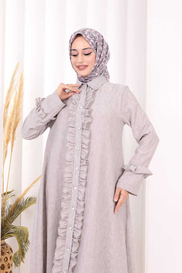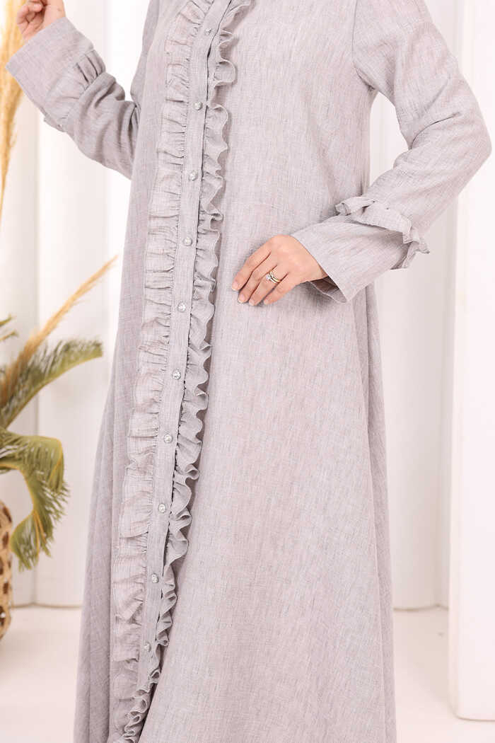 Fırfır Detaylı Elbise 6066 Açık Gri