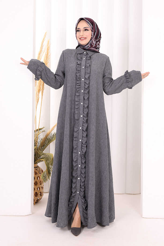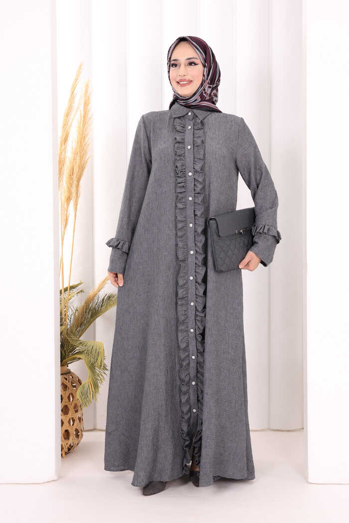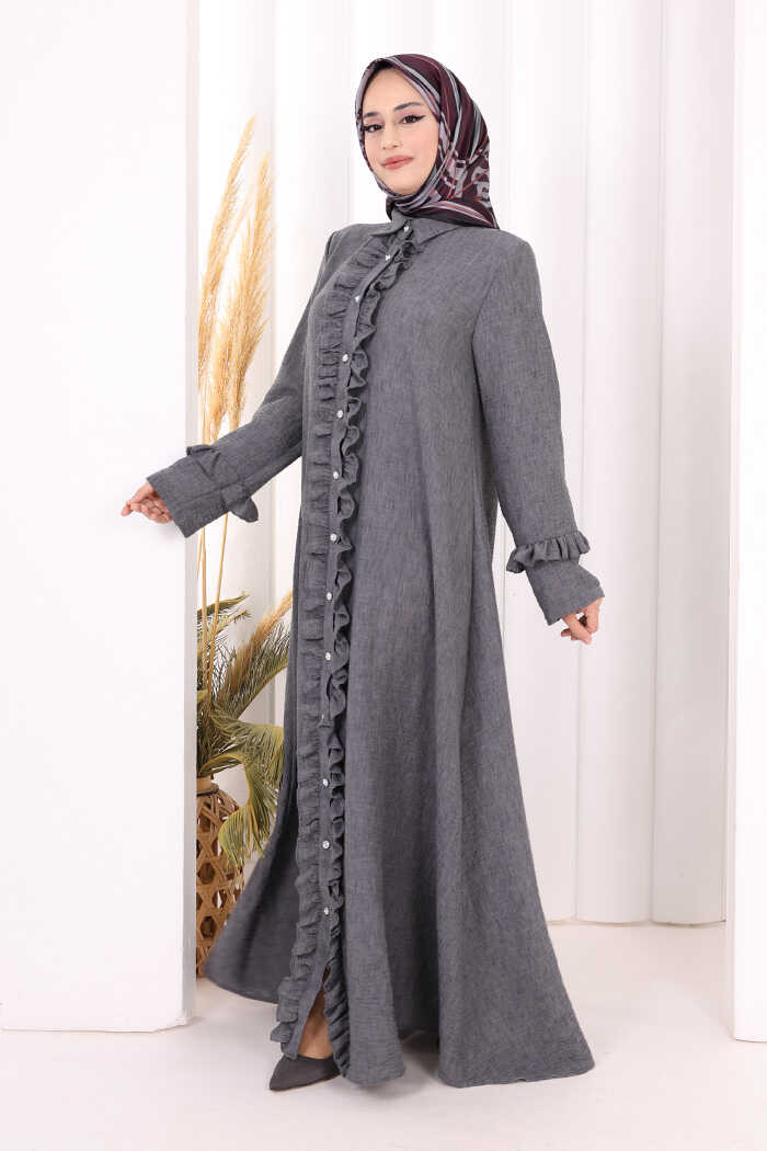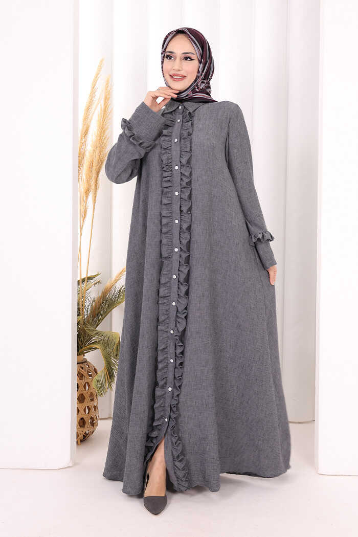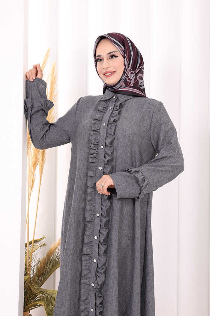 Fırfır Detaylı Elbise 6066 Antrasit