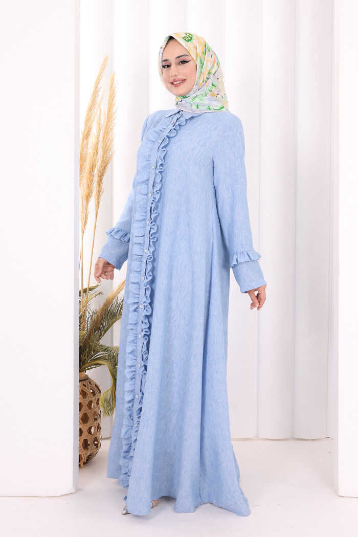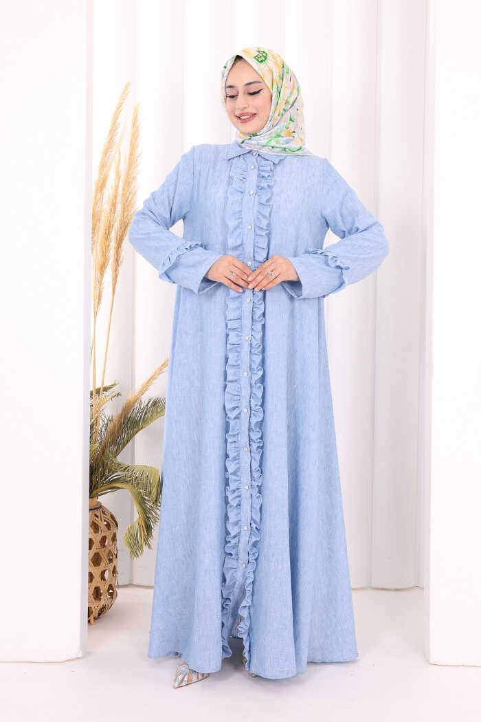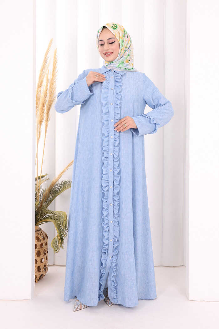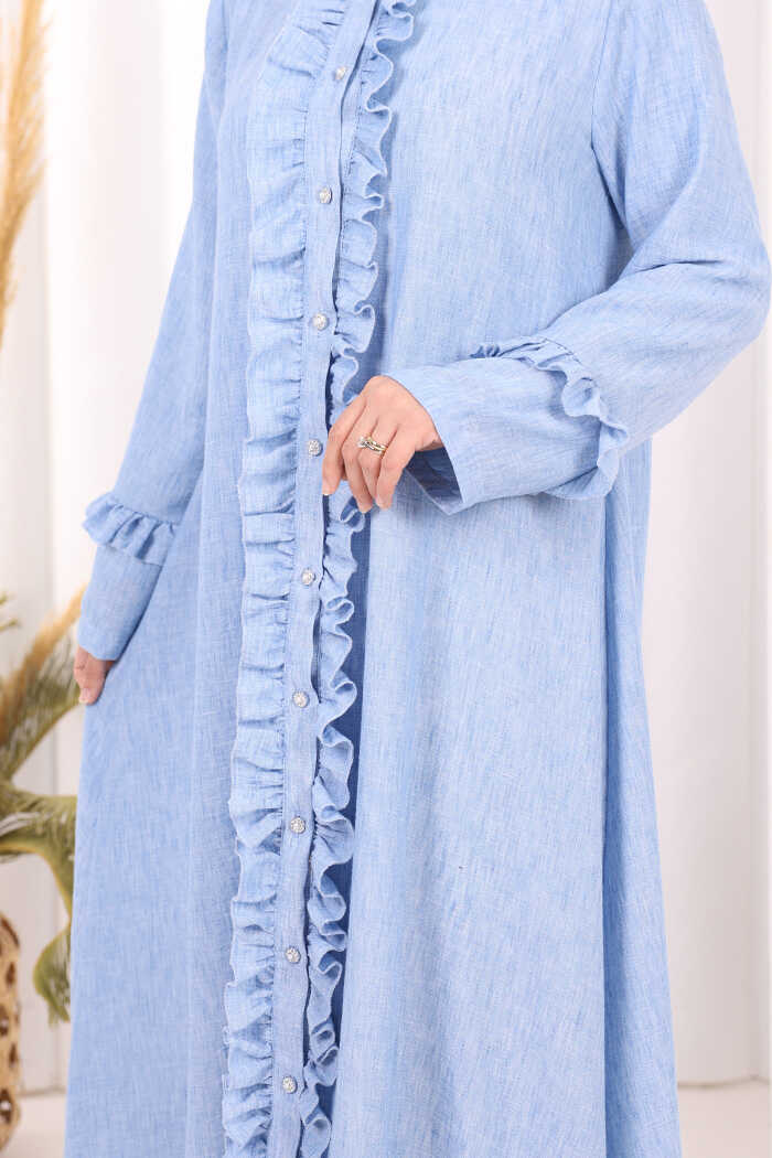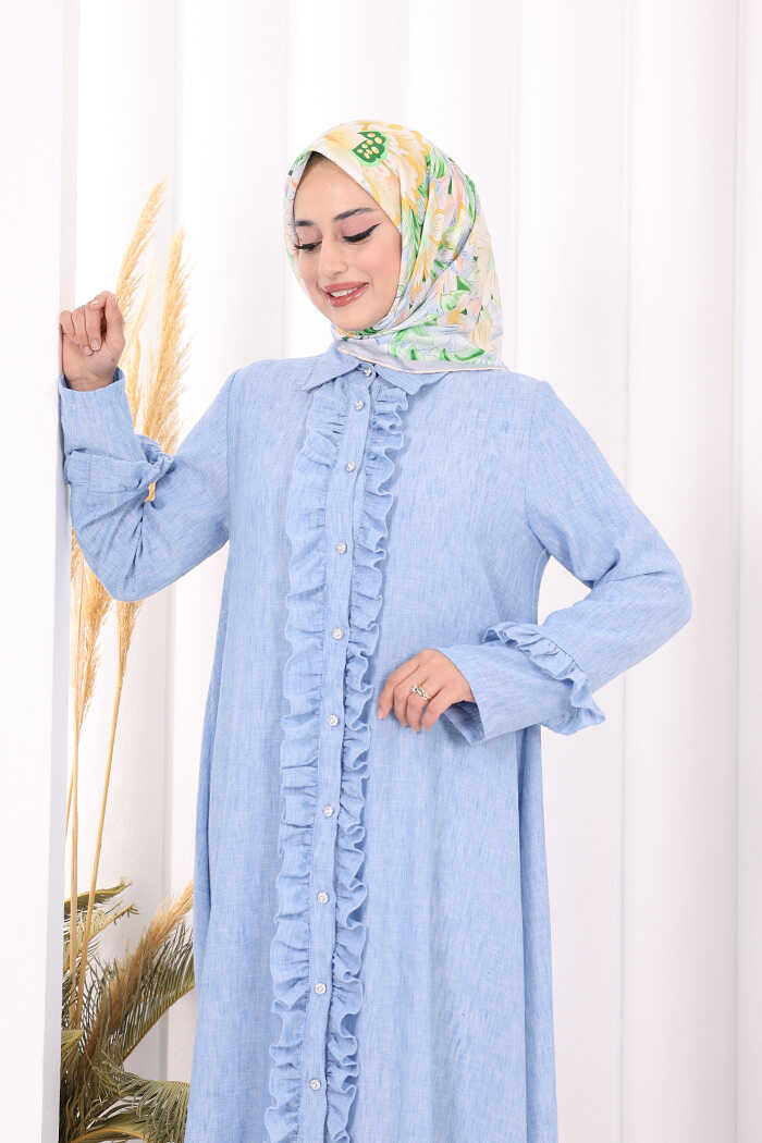 Fırfır Detaylı Elbise 6066 Mavi