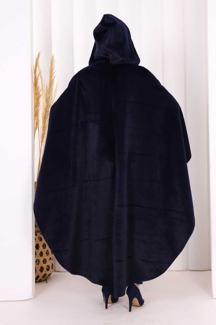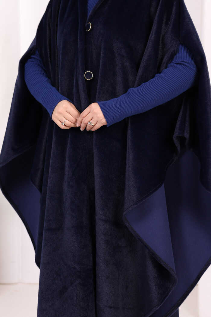 Foks Kumaş Kapşonlu Panço 70130 Lacivert