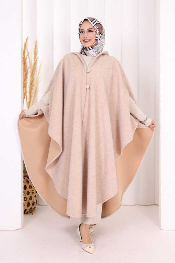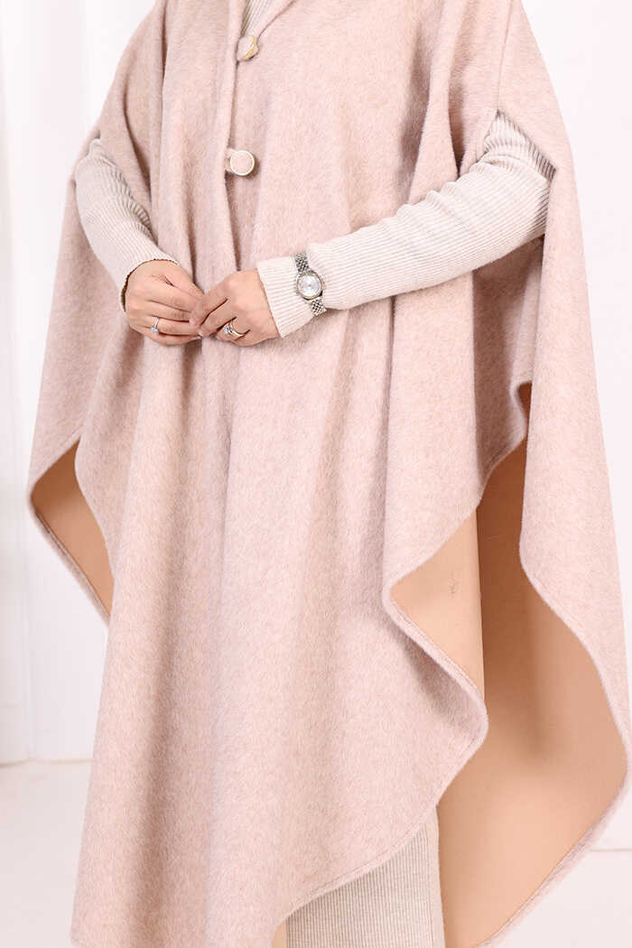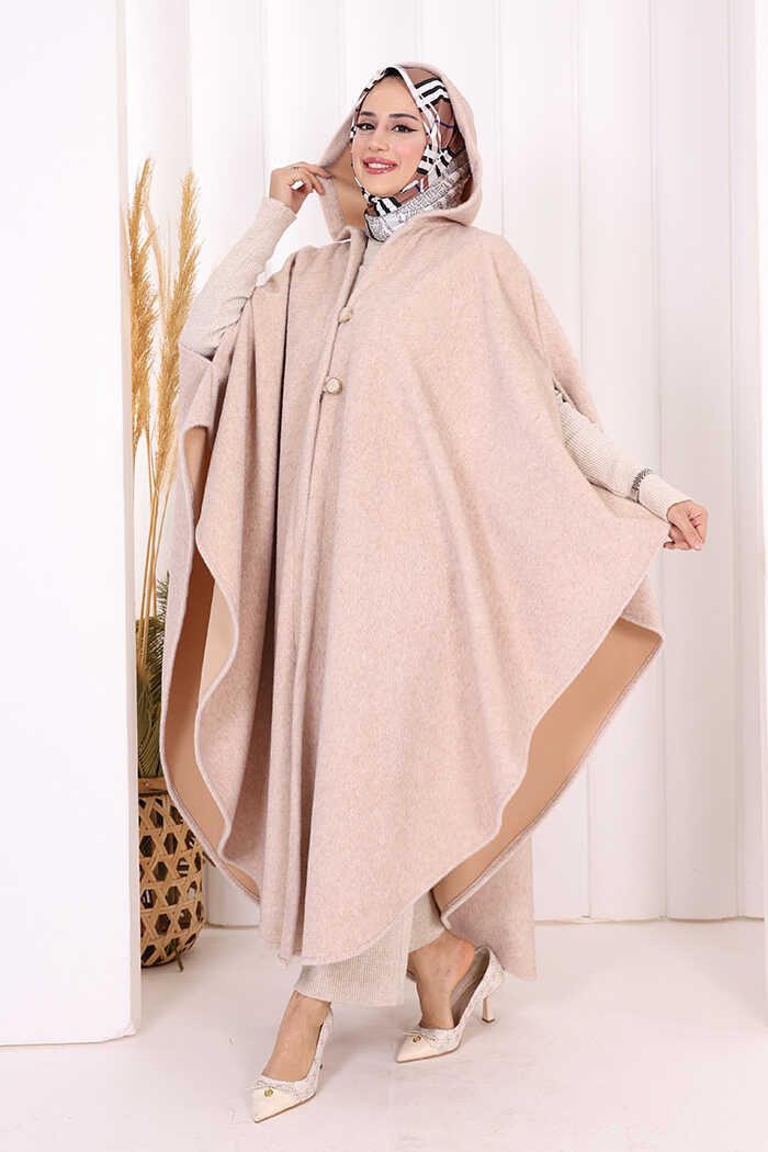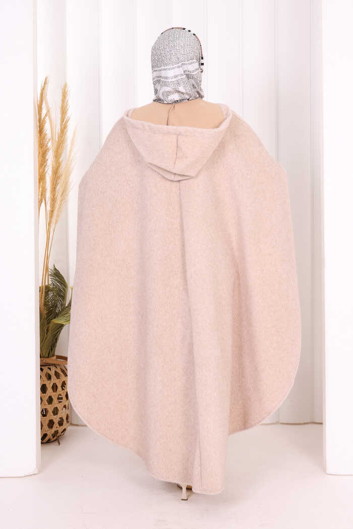 Foks Kumaş Kapşonlu Panço 70130 Somon