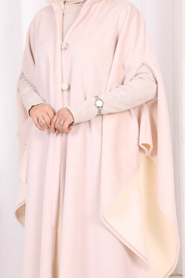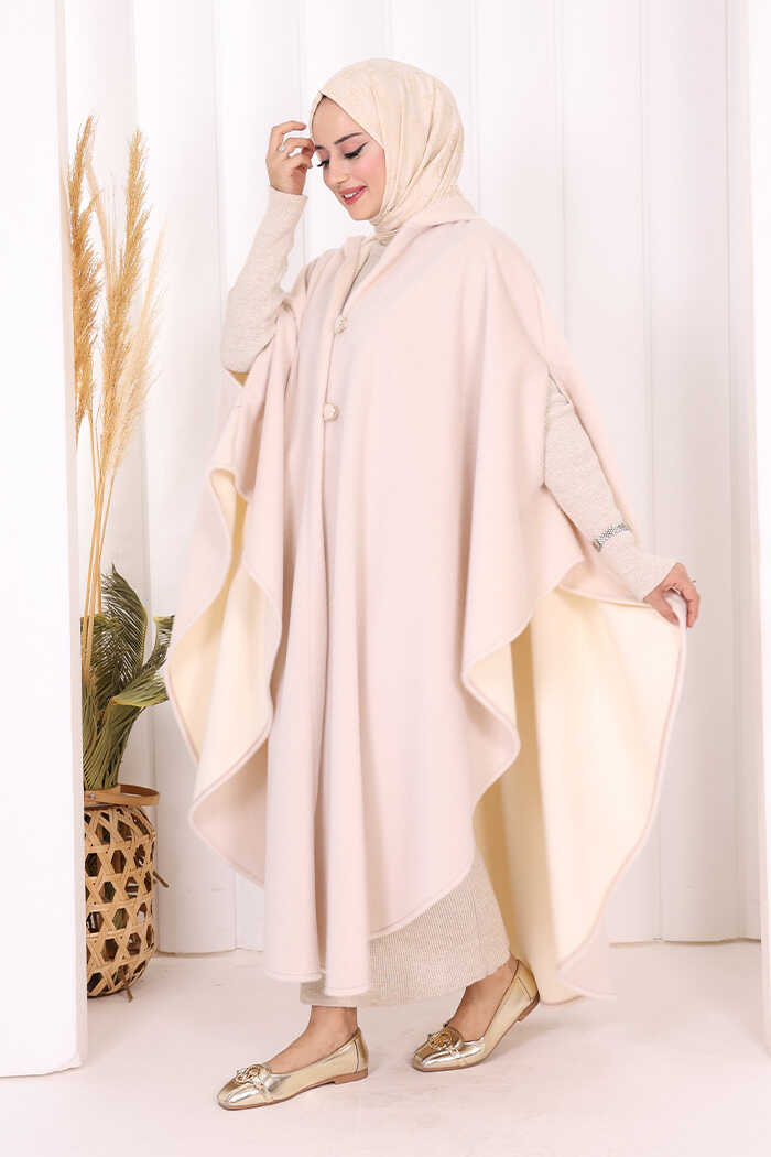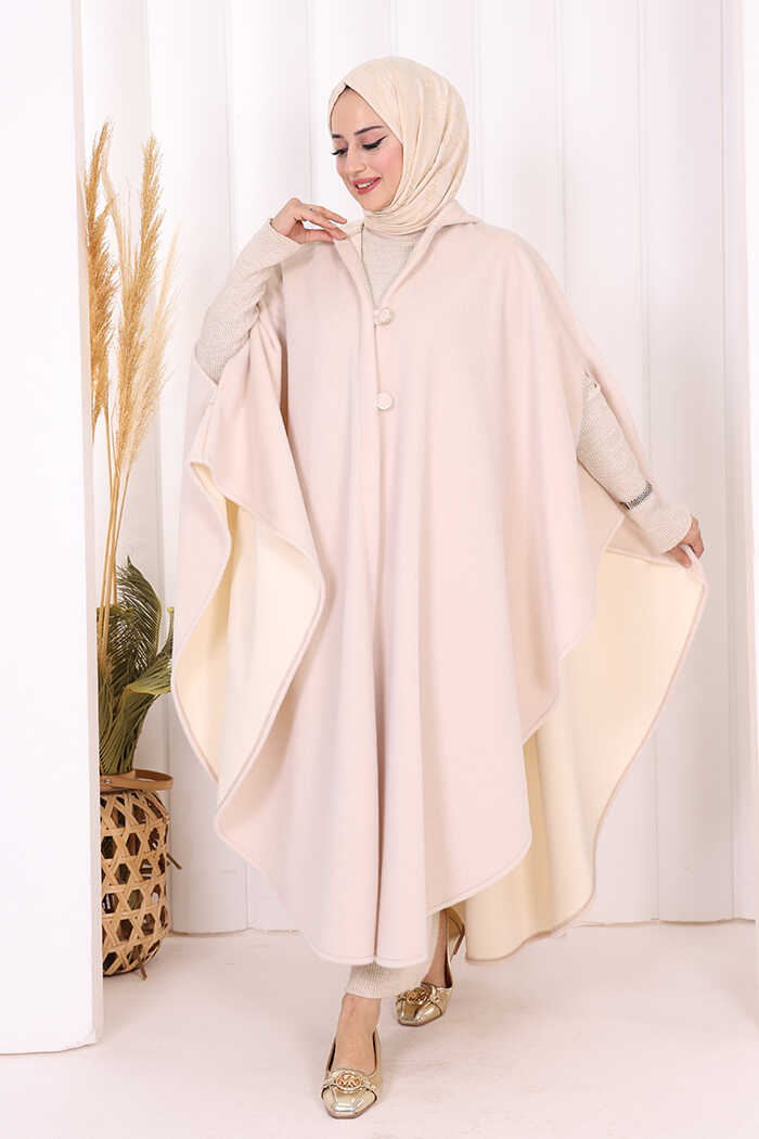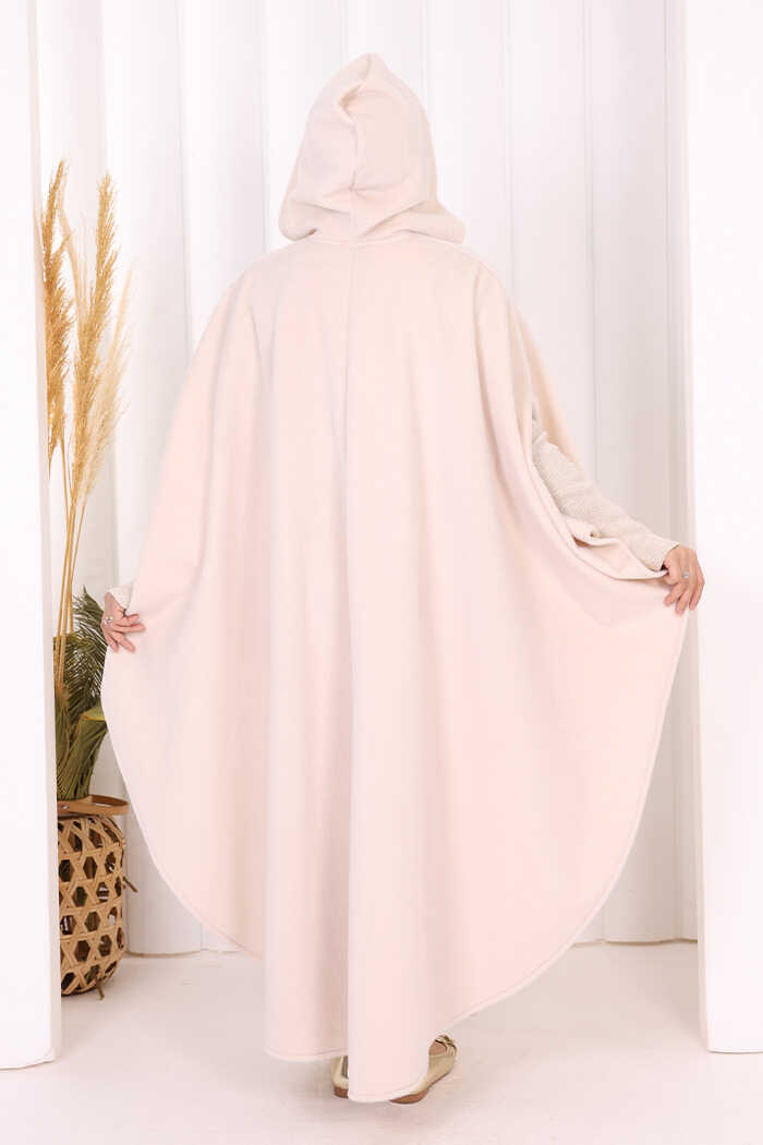 Foks Kumaş Kapşonlu Panço 70130 Taş