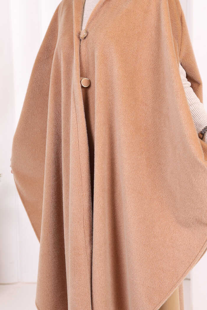 Foks Kumaş Kapşonlu Panço 70130 Vizon