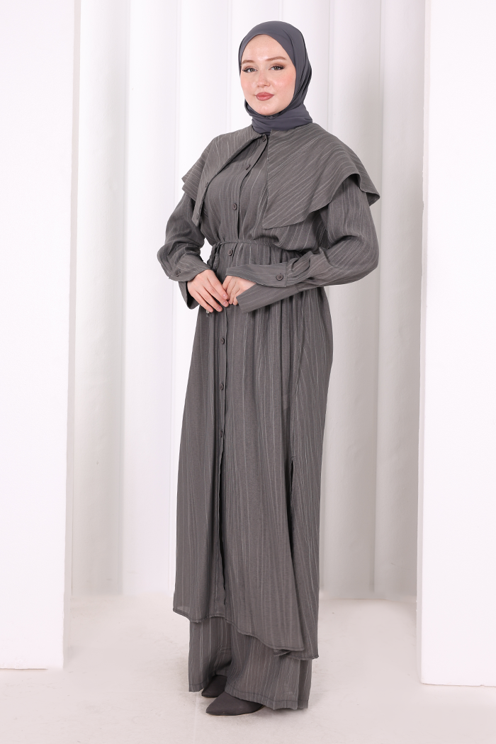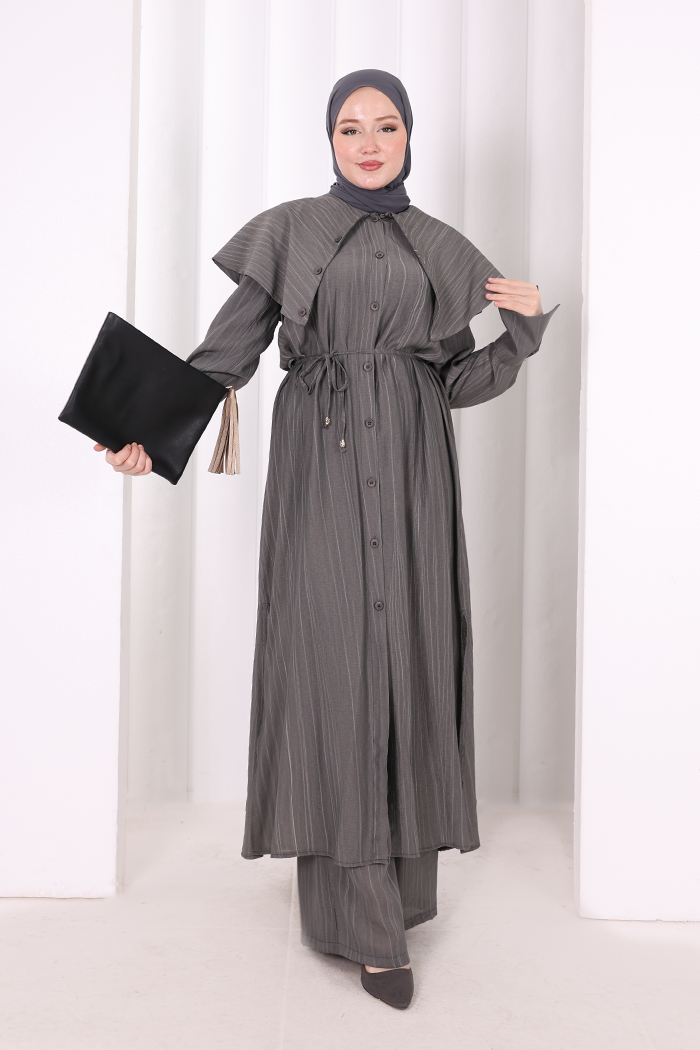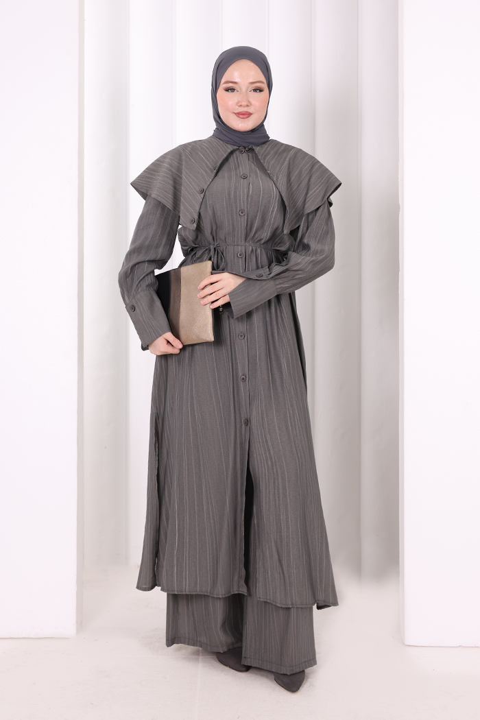 Geniş Yakalı İkili Takım 8036 Füme