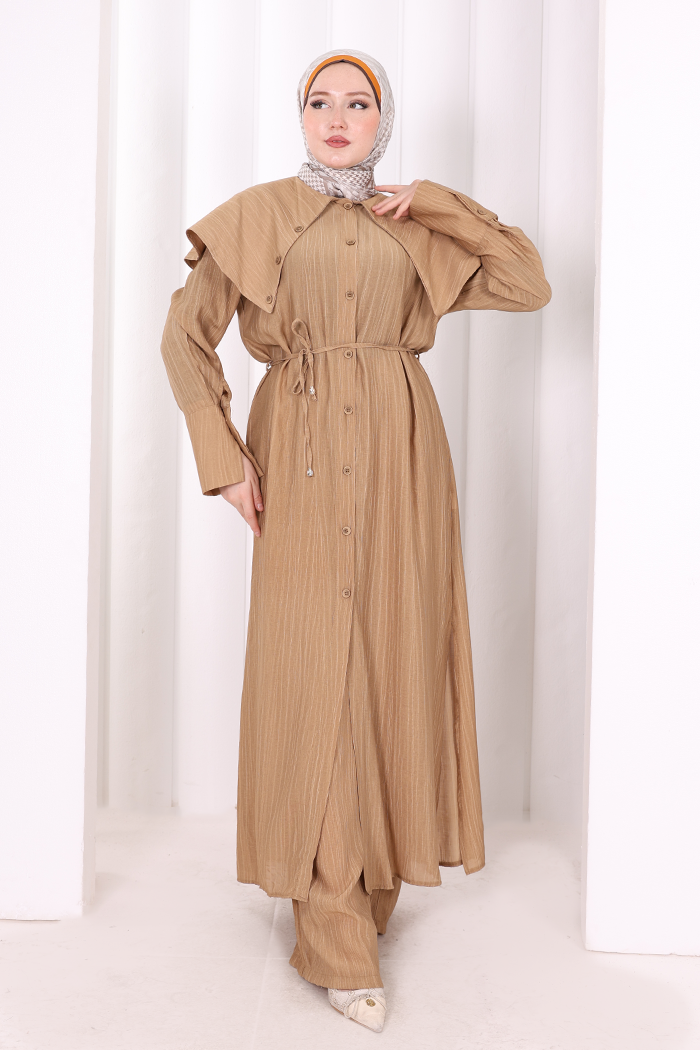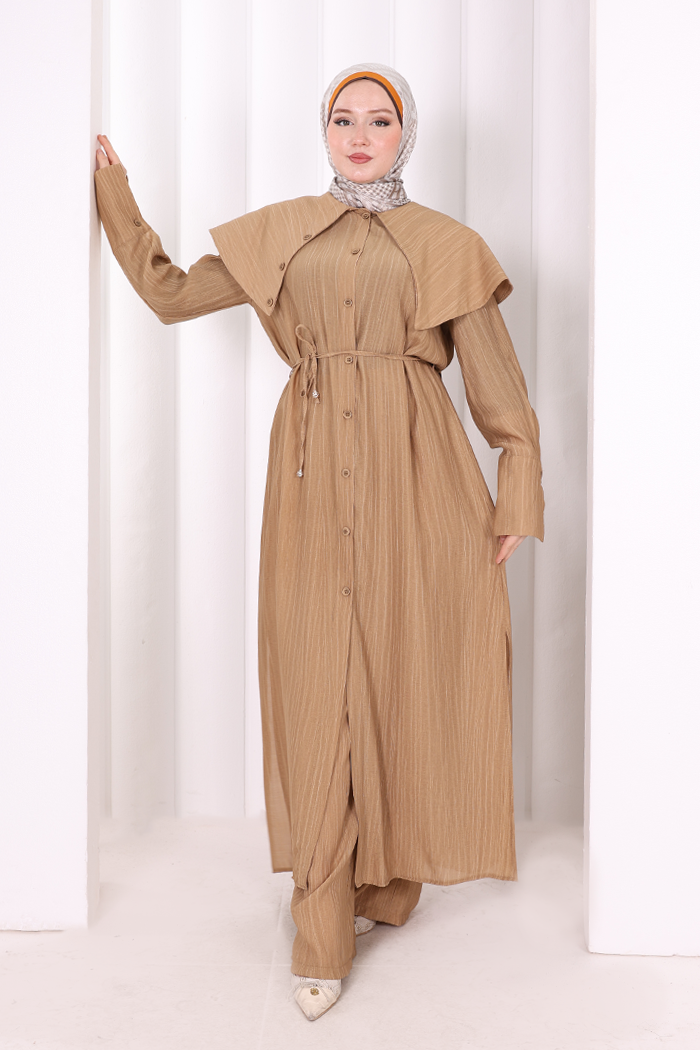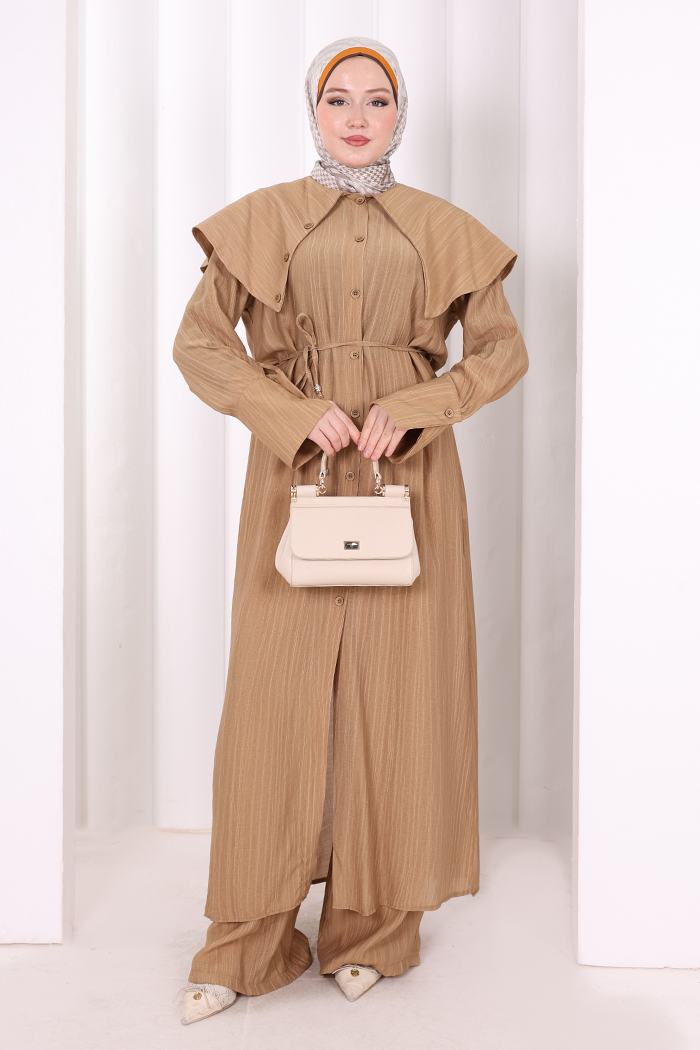 Geniş Yakalı İkili Takım 8036 Taba