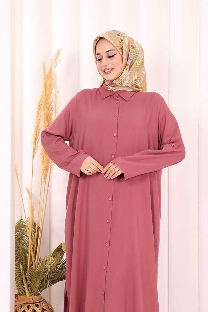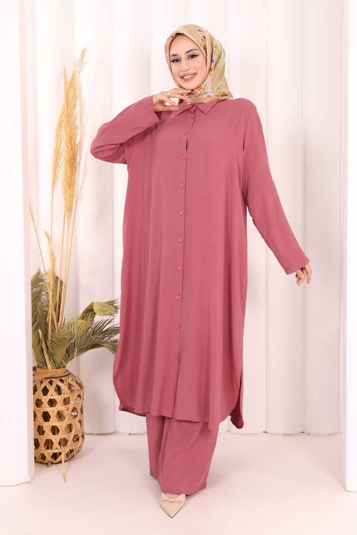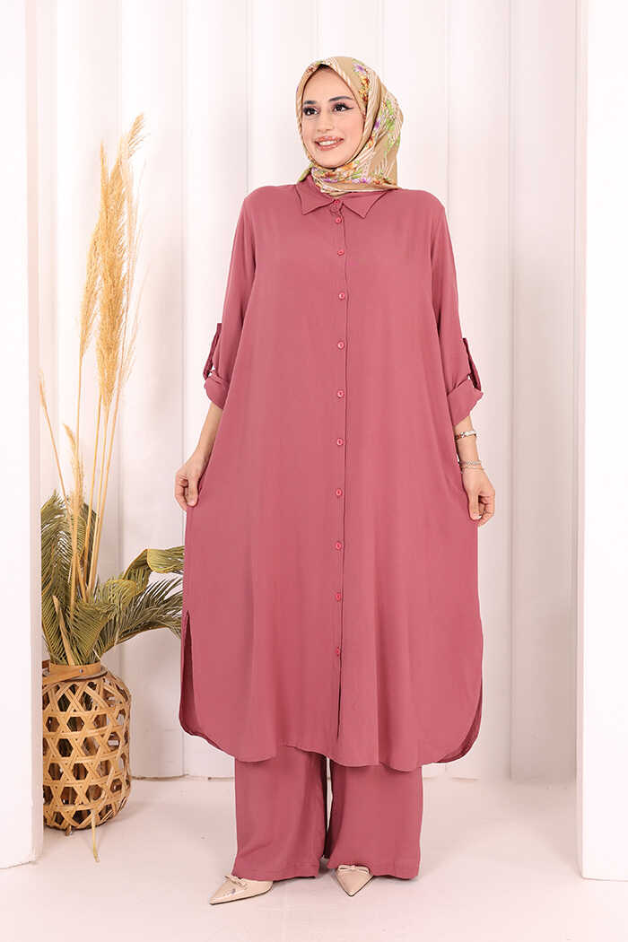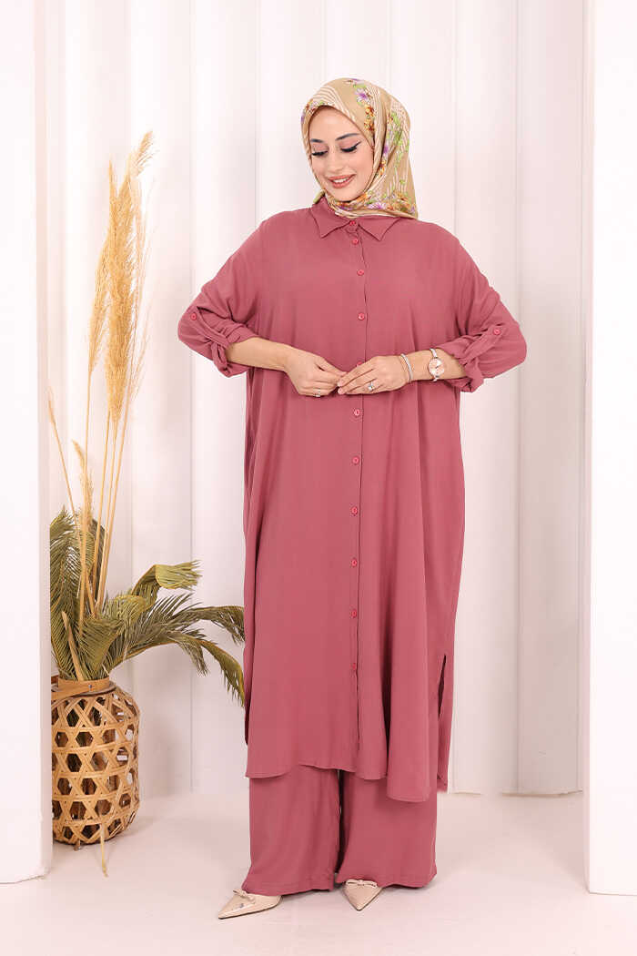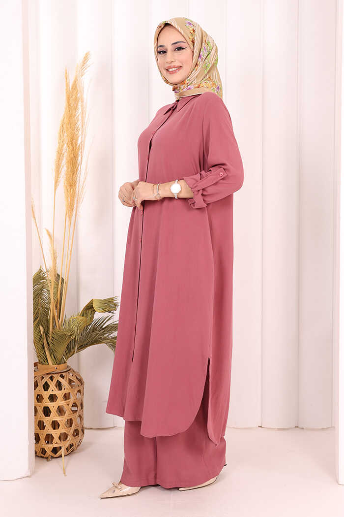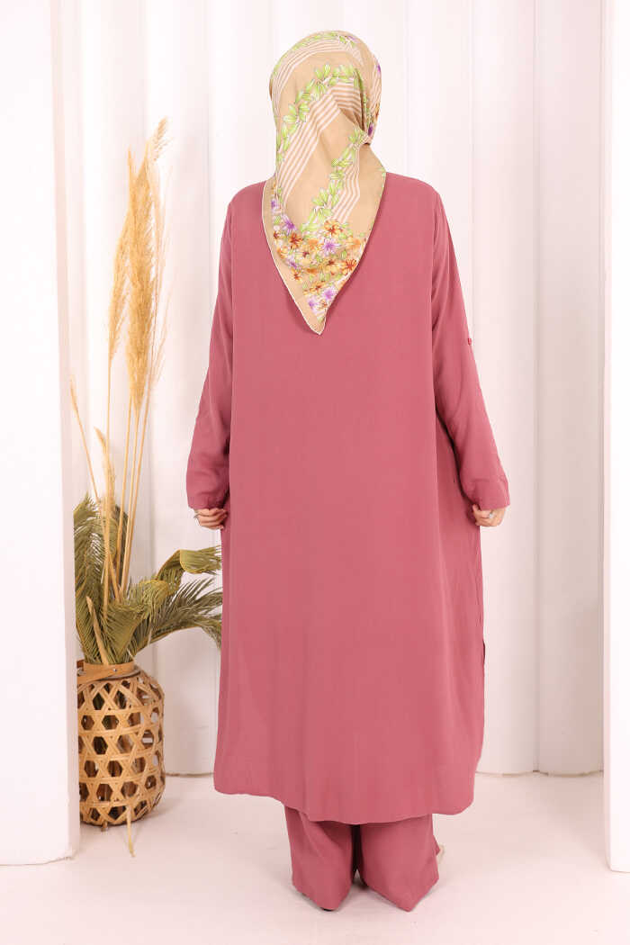 Hac Umre Düğmeli İkili Takım 6057 Gül Kurusu