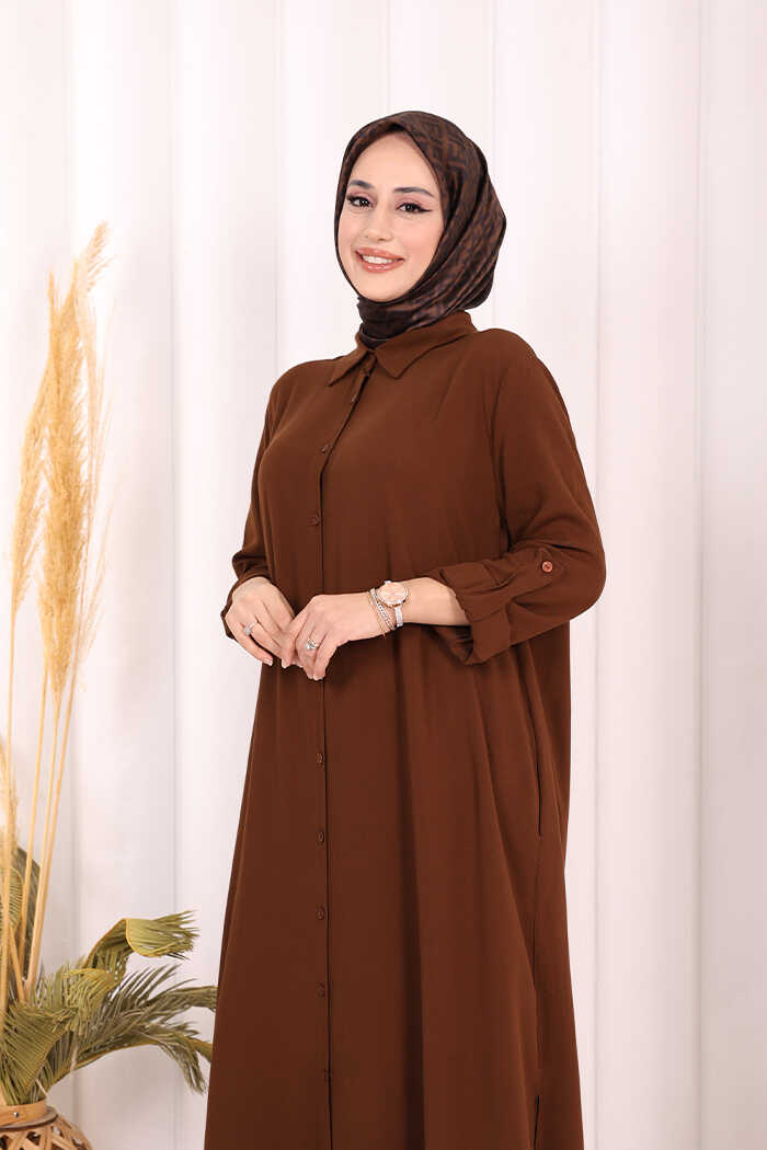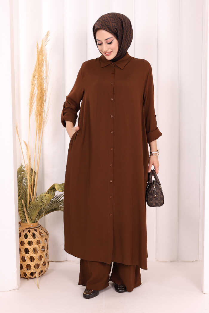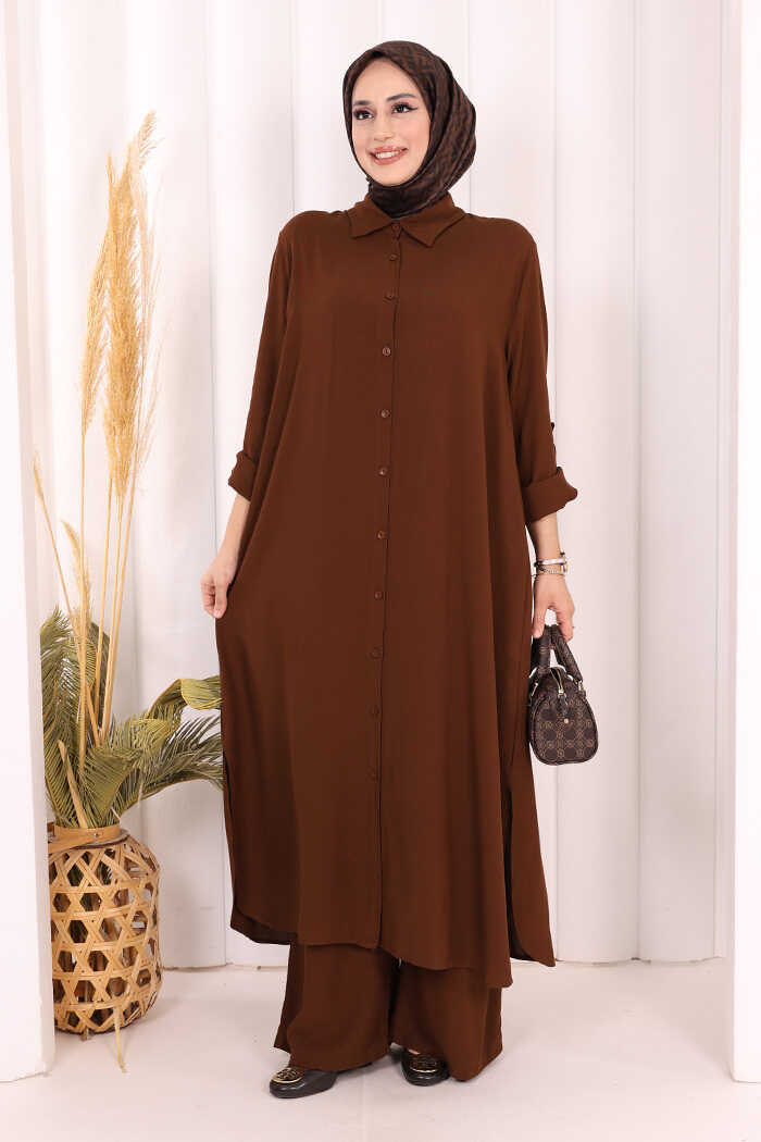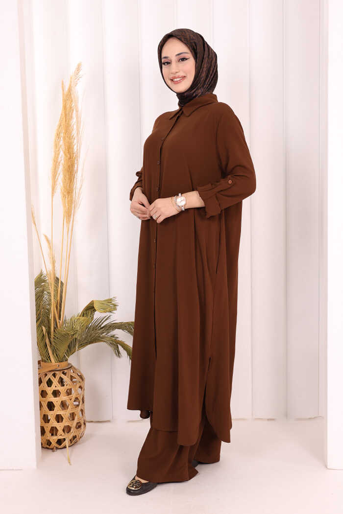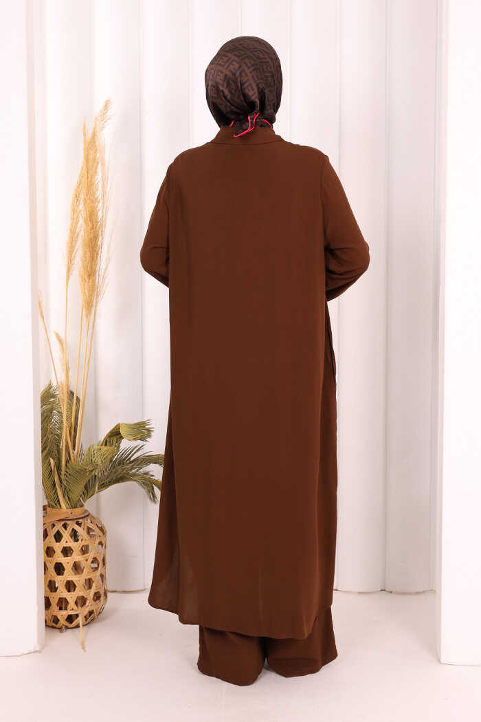 Hac Umre Düğmeli İkili Takım 6057 Kahverengi