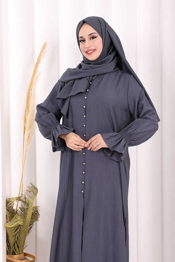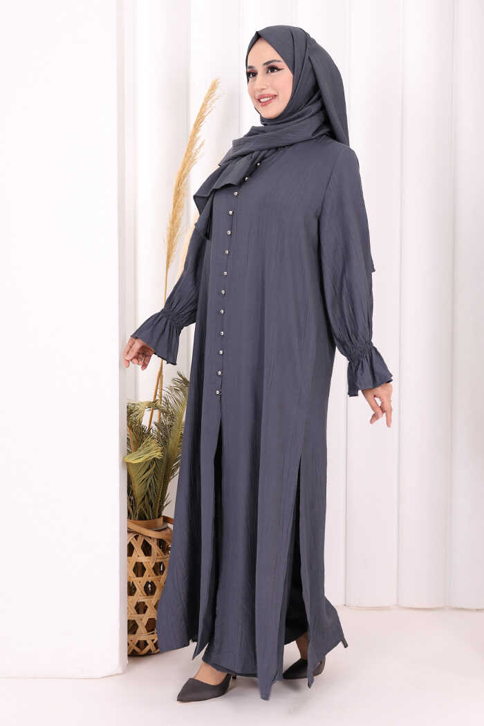 Hac Umre Takım Önü Düğmeli Tunik,Pantolon ŞAL HEDİYE 8014 Füme