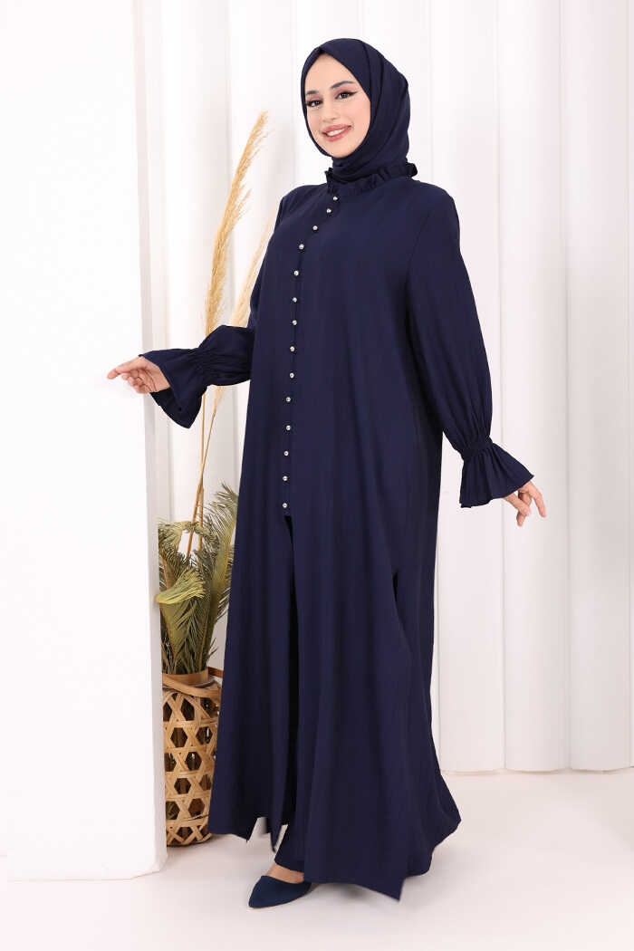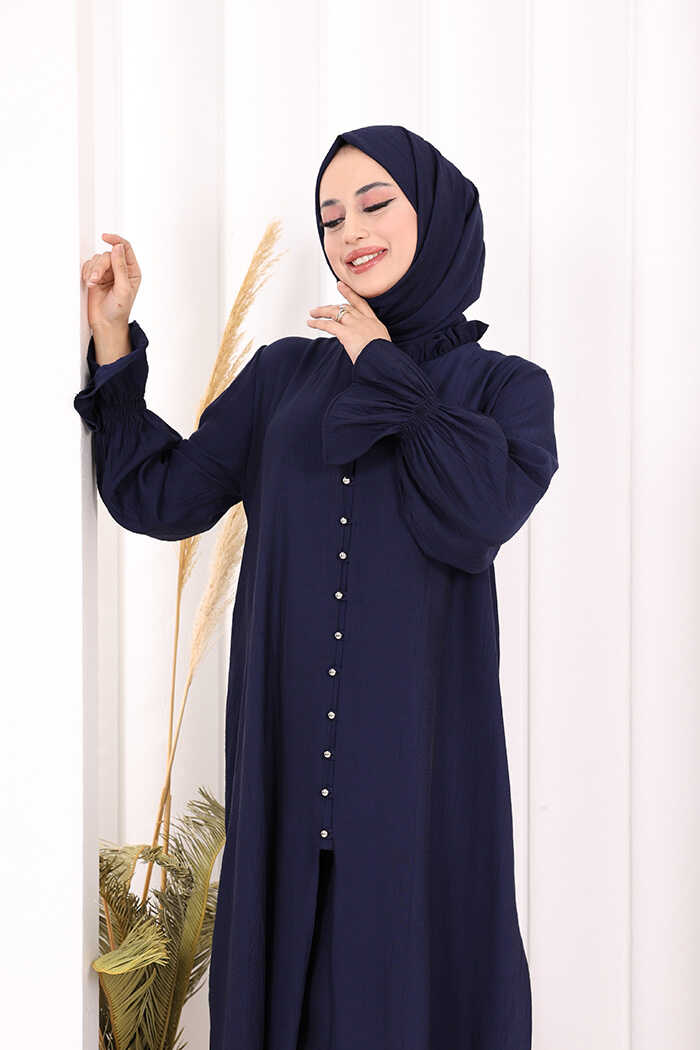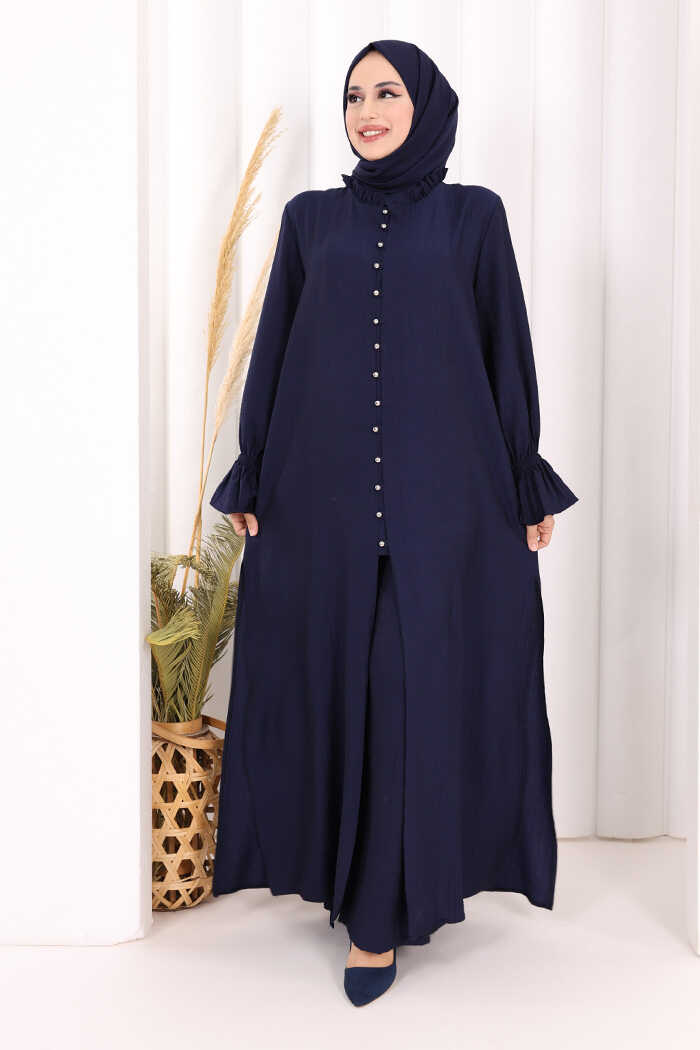 Hac Umre Takım Önü Düğmeli Tunik,Pantolon ŞAL HEDİYE 8014 Lacivert