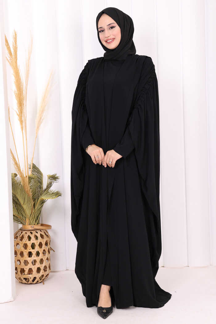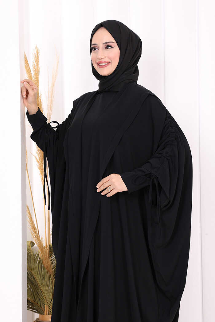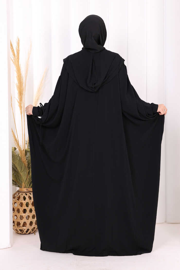 Kapüşonlu Abaya ve Elbise İkili Takım 70013 Siyah