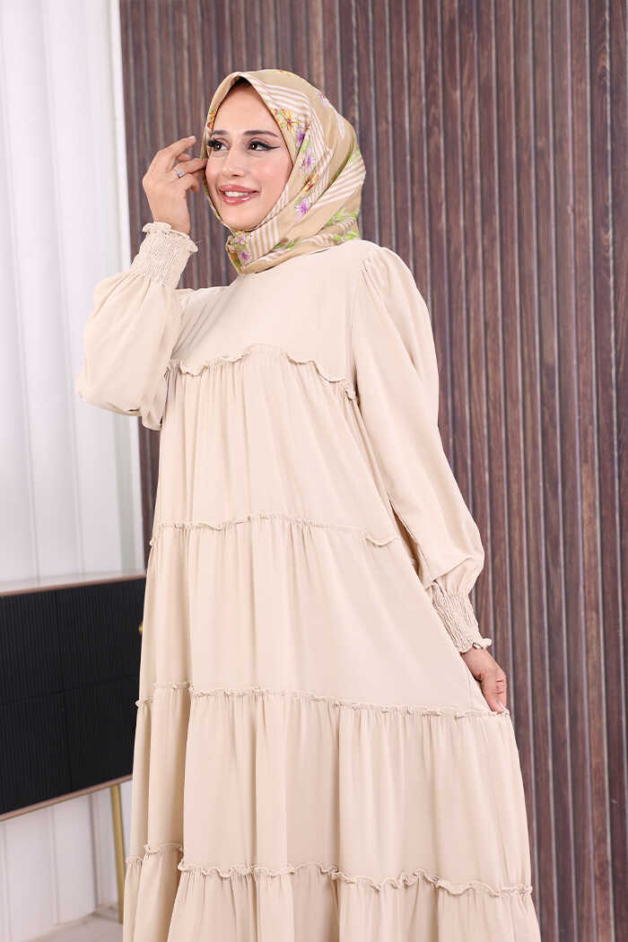 Dubai Katlı Salaş Elbise 6023 Taş