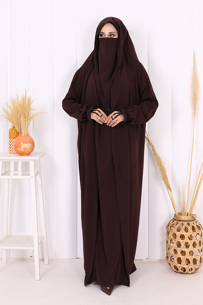 Kendinden Peçeli Sufleli Cilbab 6032 Kahverengi