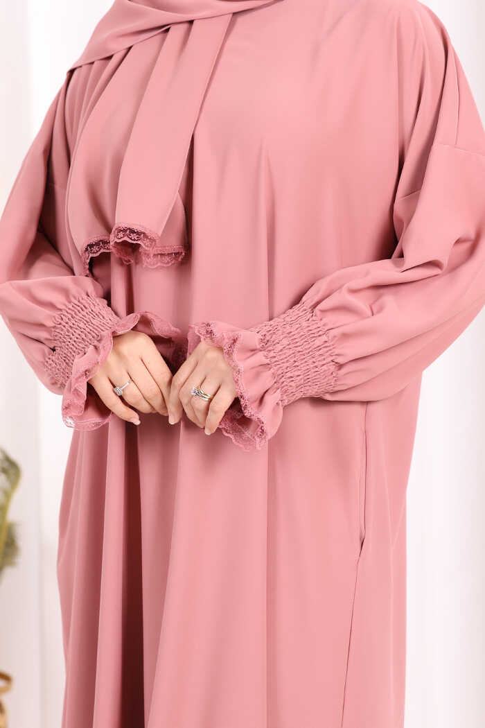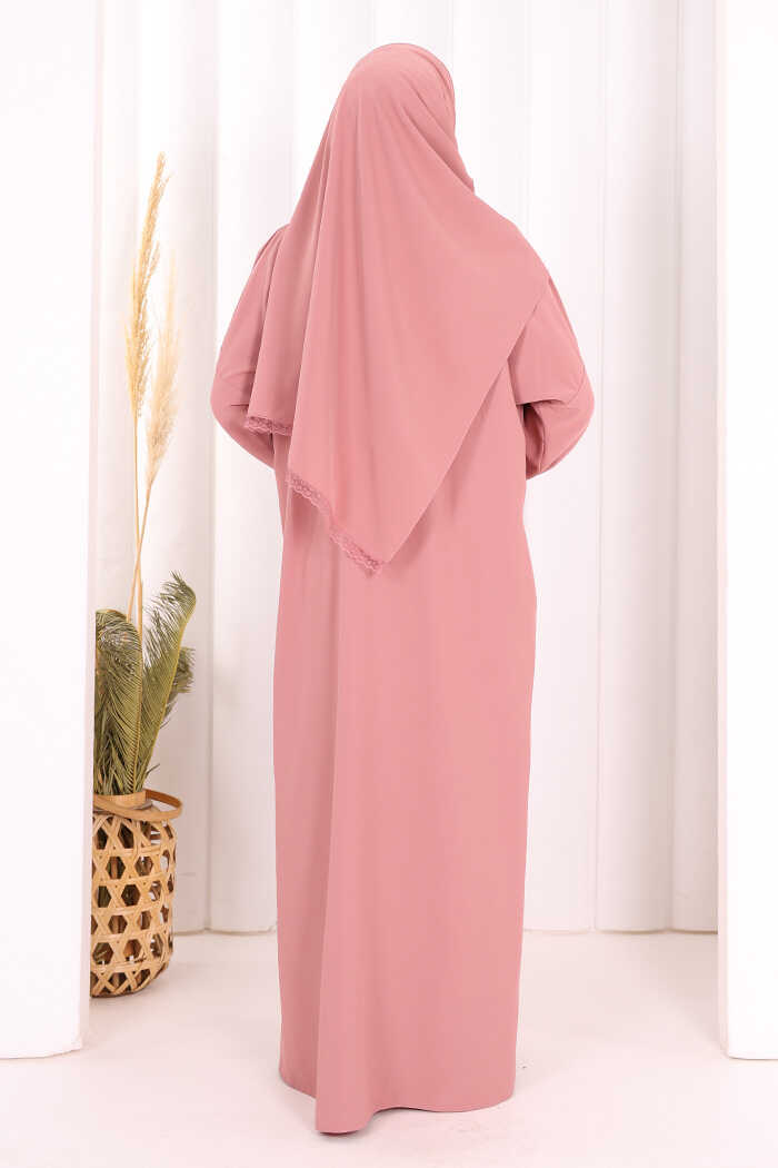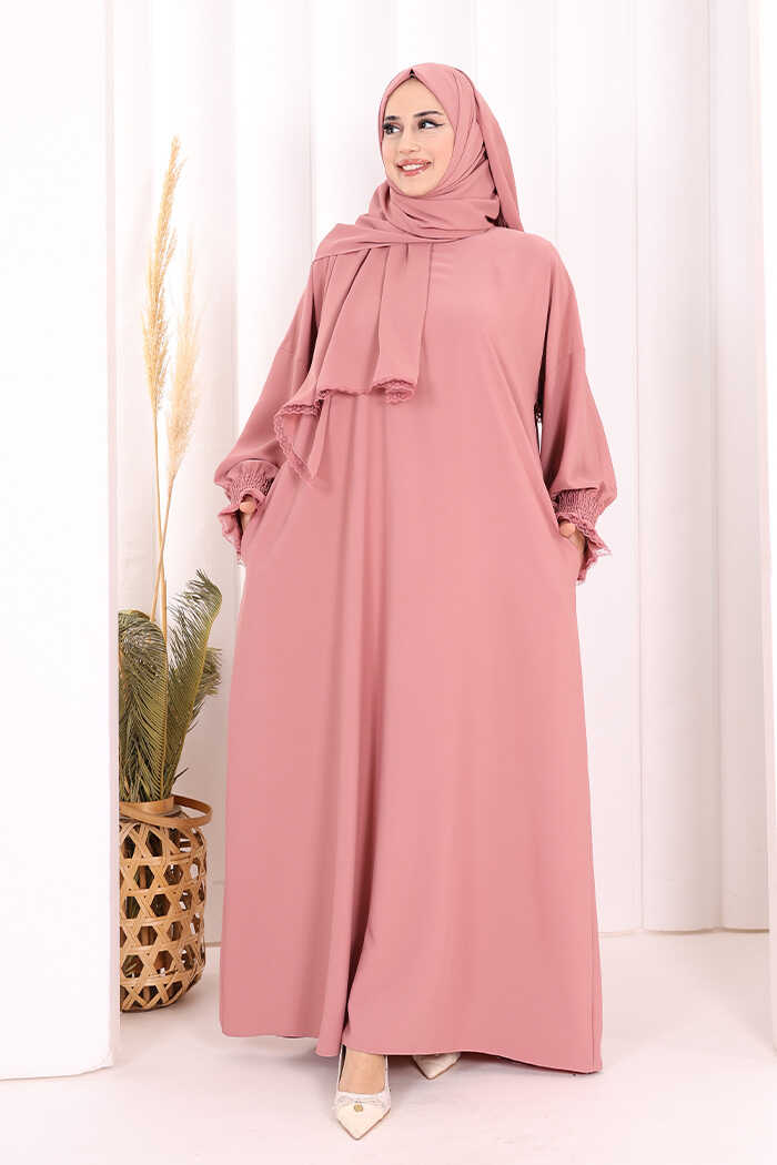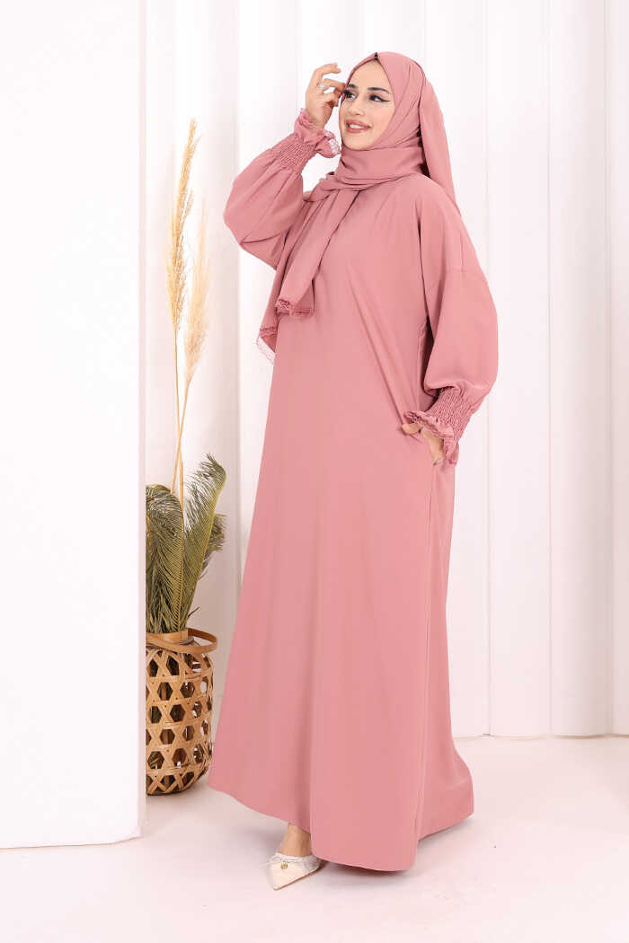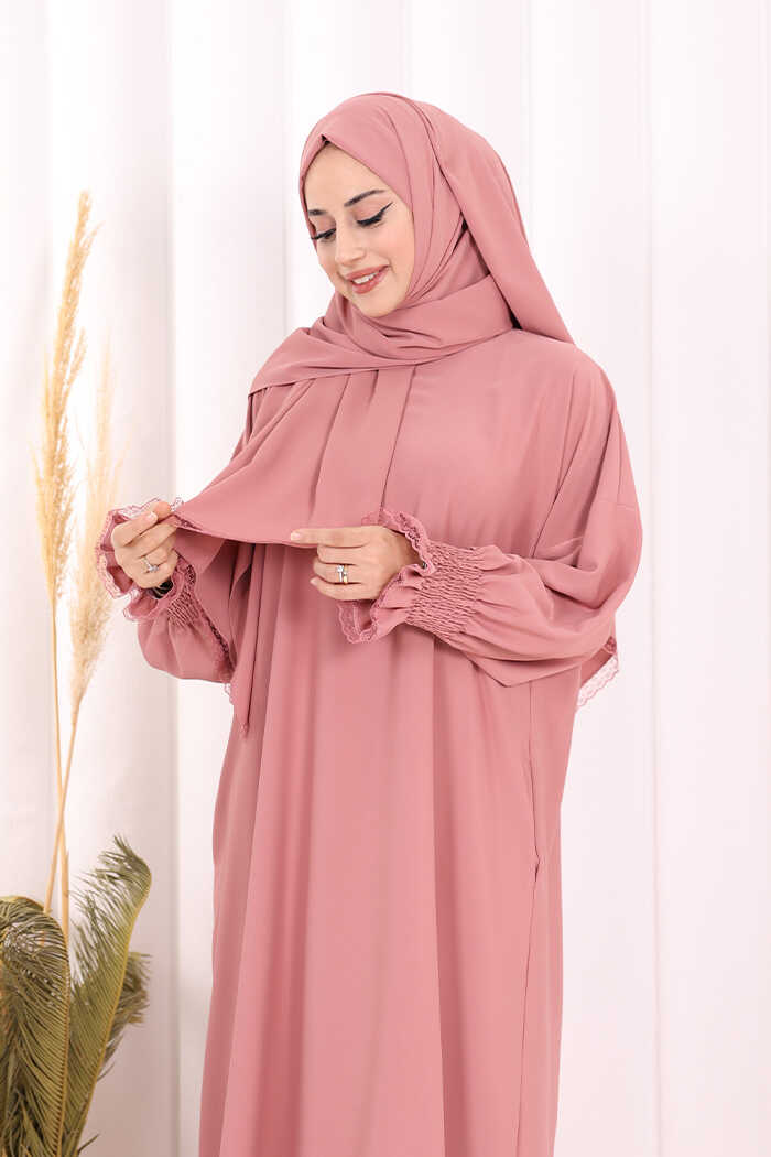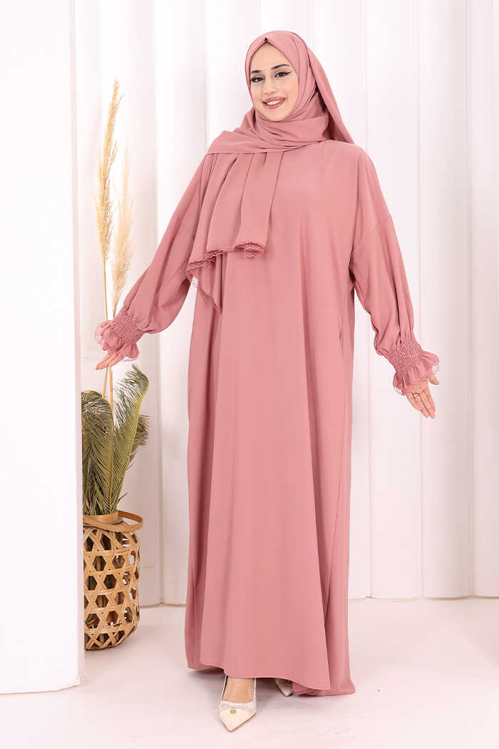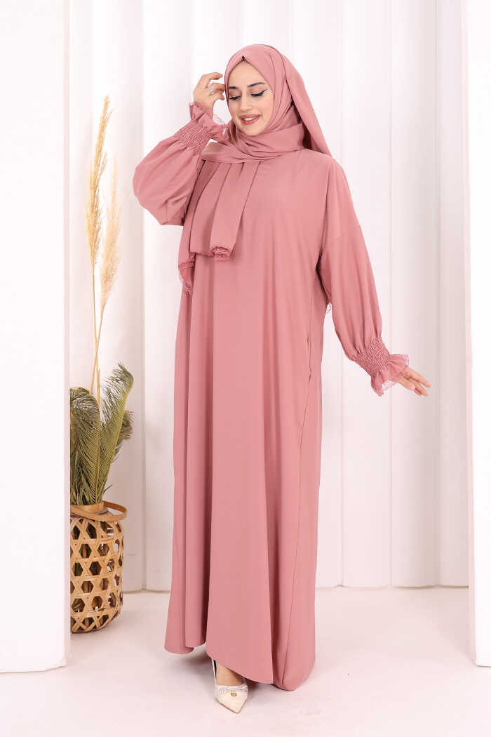 Kendinden Şallı Namaz Elbisesi 8007 Pudra
