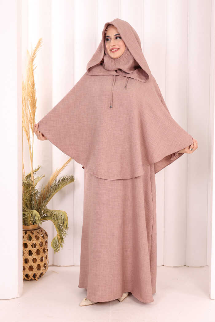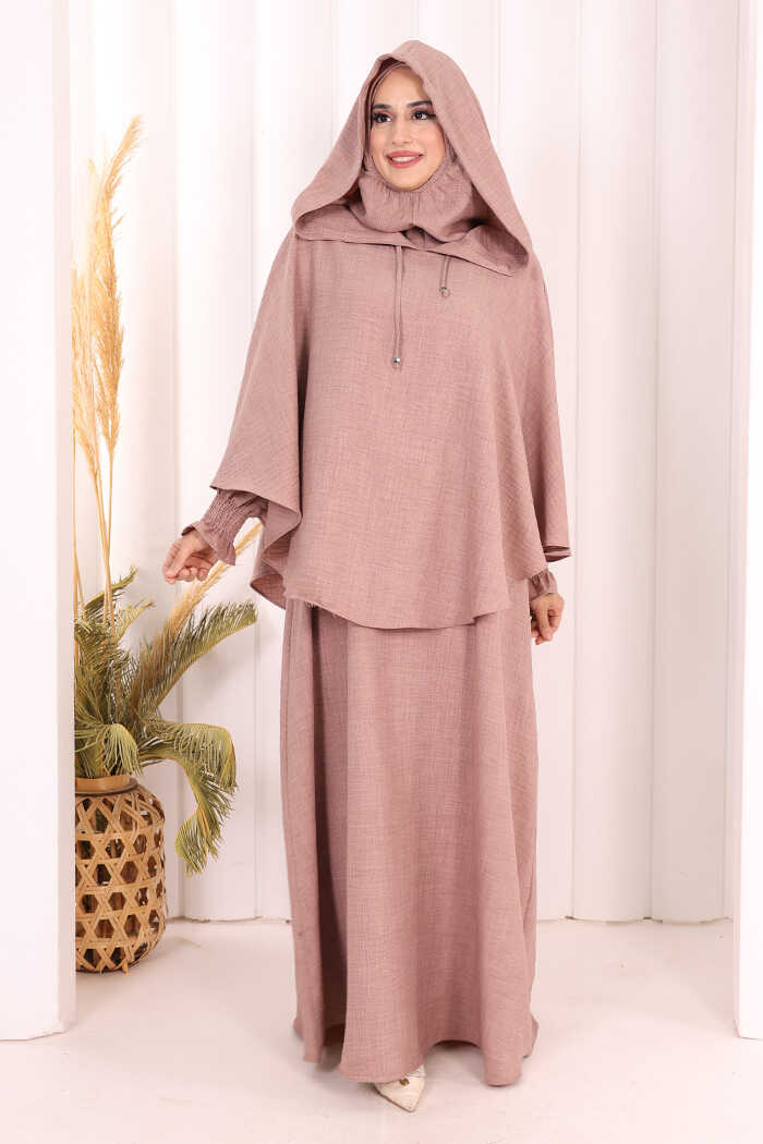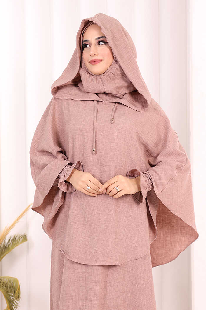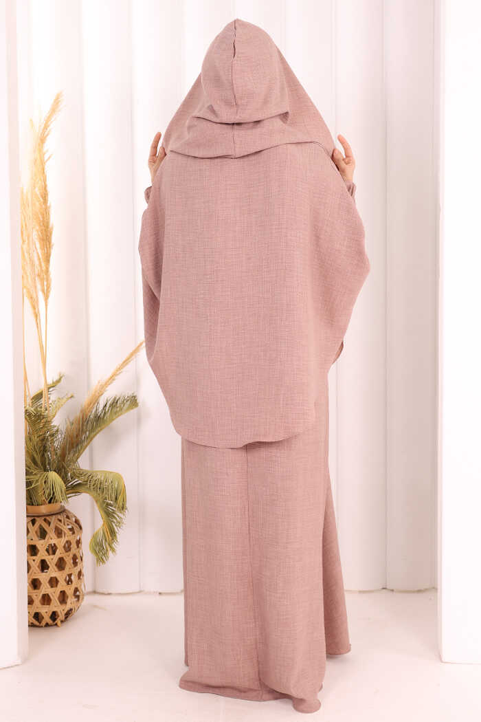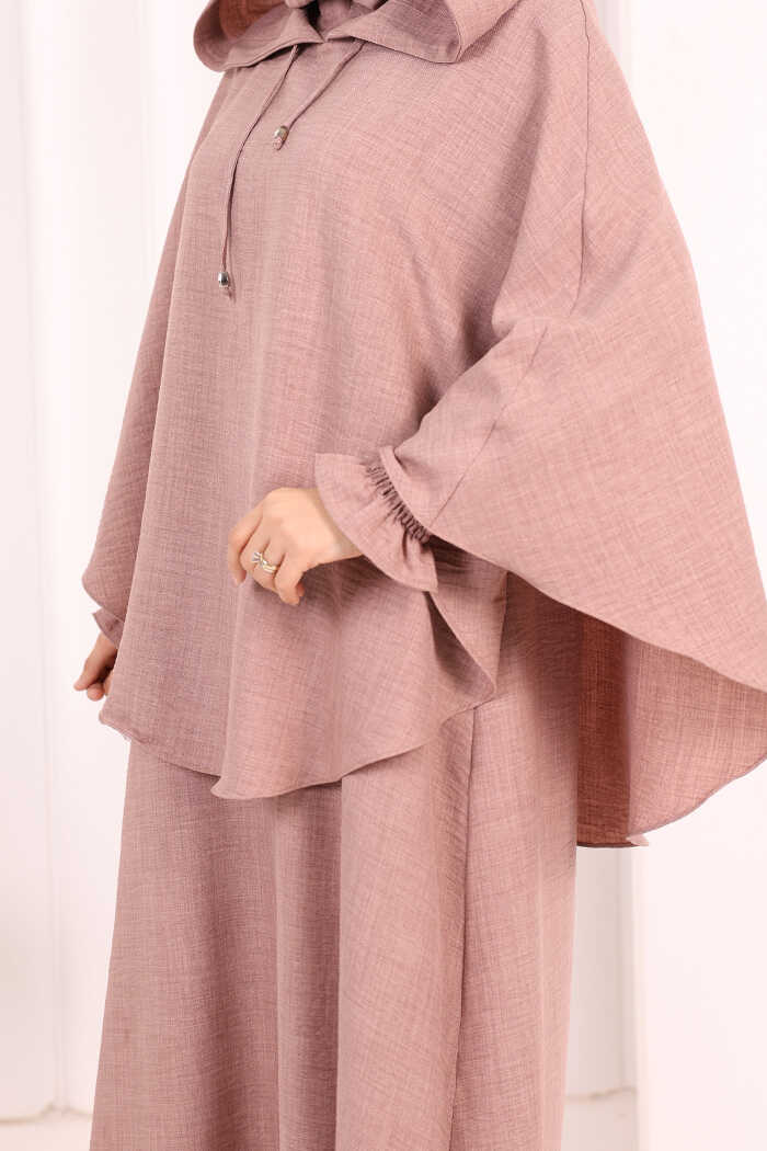 Keten Sufleli Elbise Takım 6067 Gül Kurusu