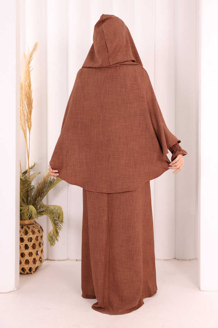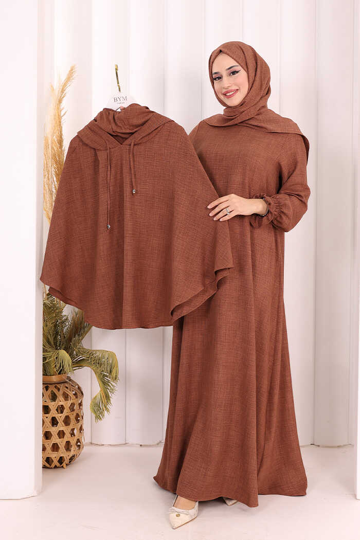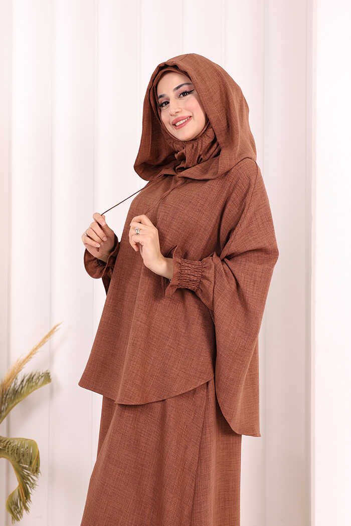 Keten Sufleli Elbise Takım 6067 Taba