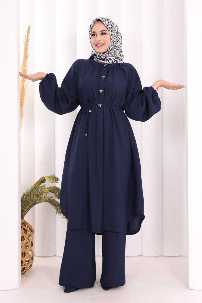 Keten Tunik Pantolon Takım 8013 Lacivert
