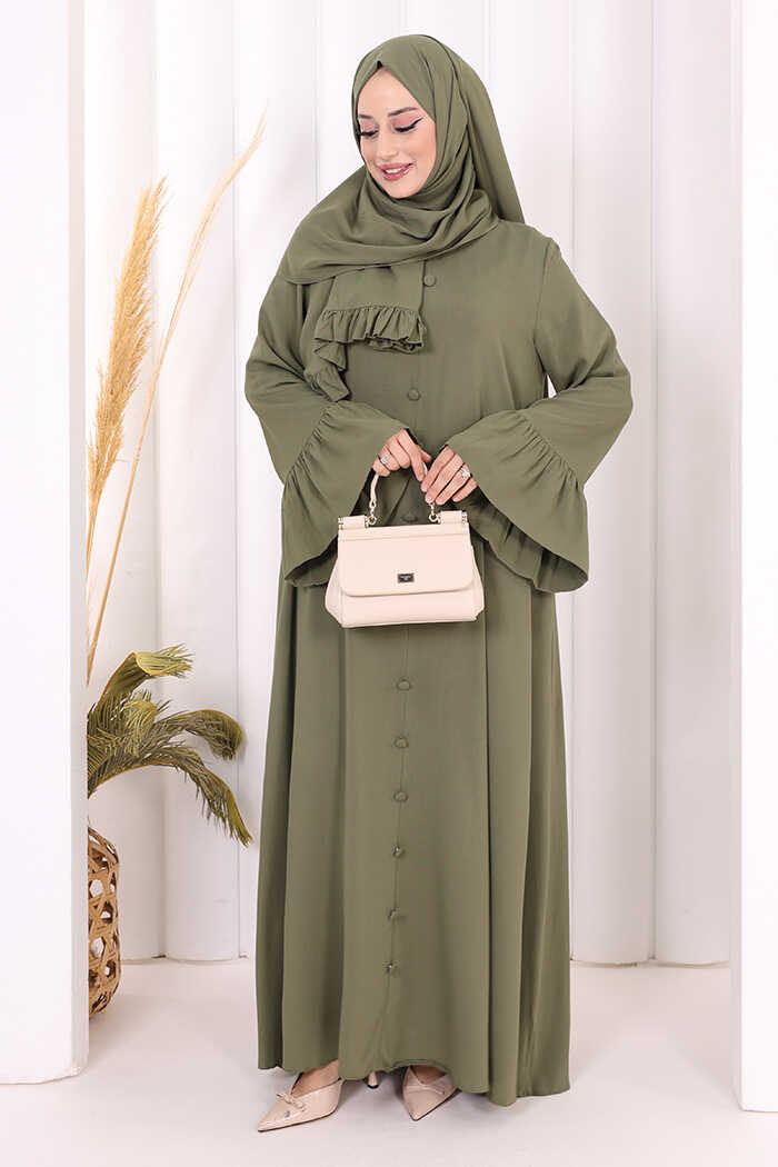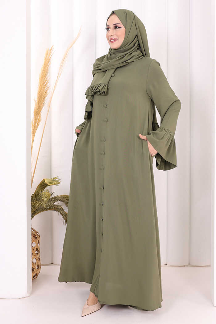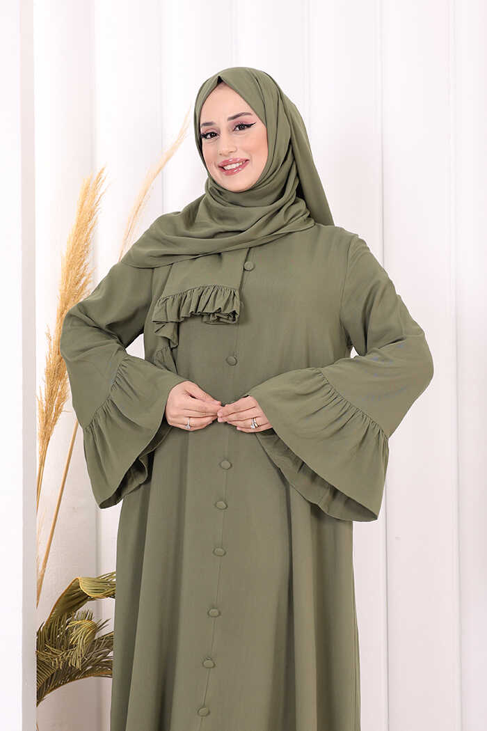 Kol Fırfır Detay Elbise Şal Hediye! 6073 Haki