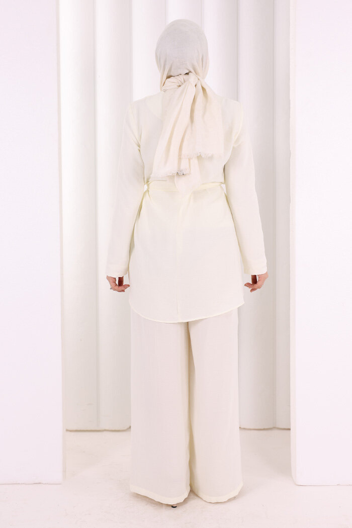 Kolyeli Tunik Pantolon Takım 8027 Ekru