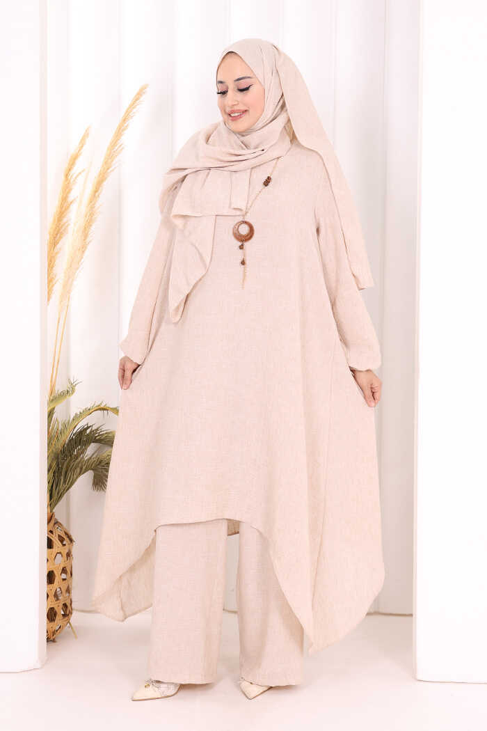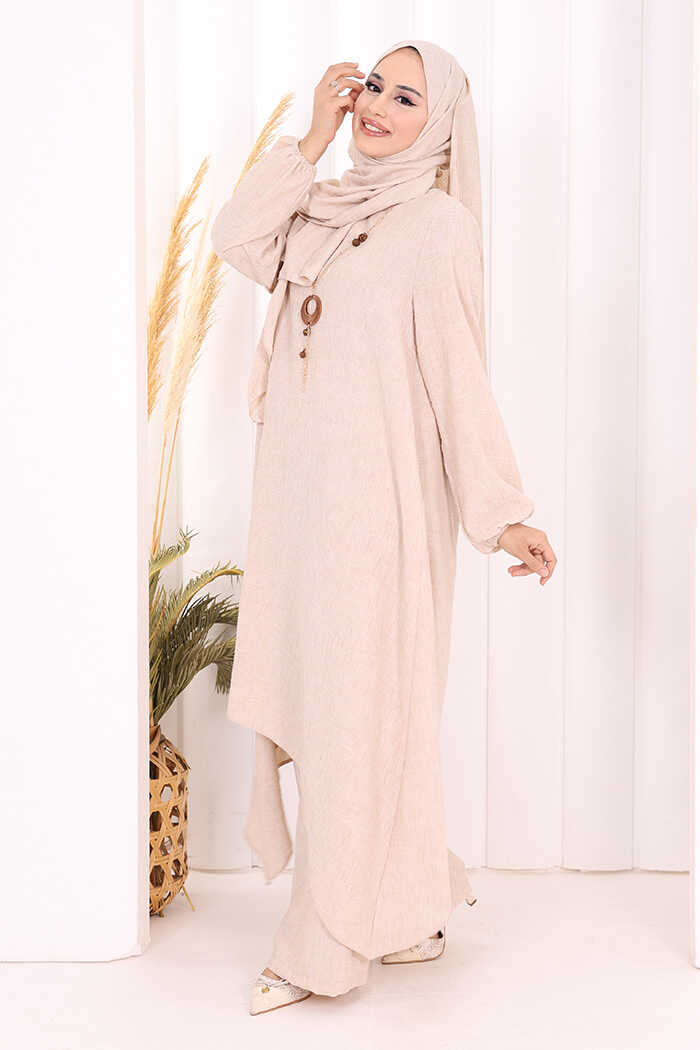 Kolyeli Tunik Pantolon Takım ŞAL HEDİYE! 8020 Taş