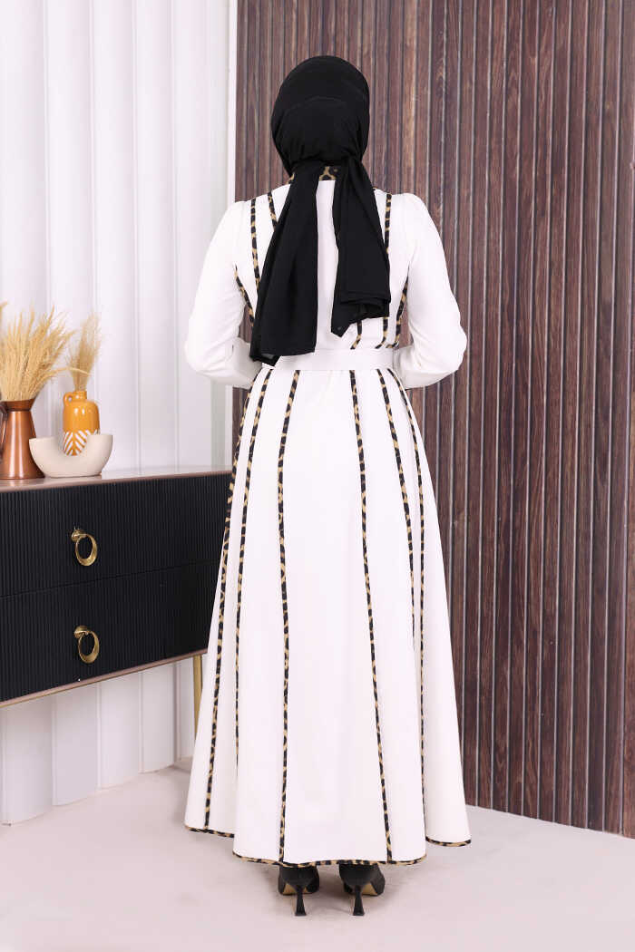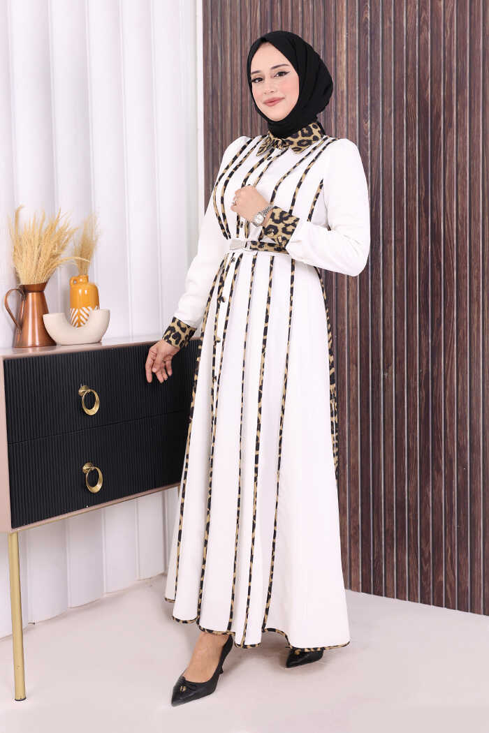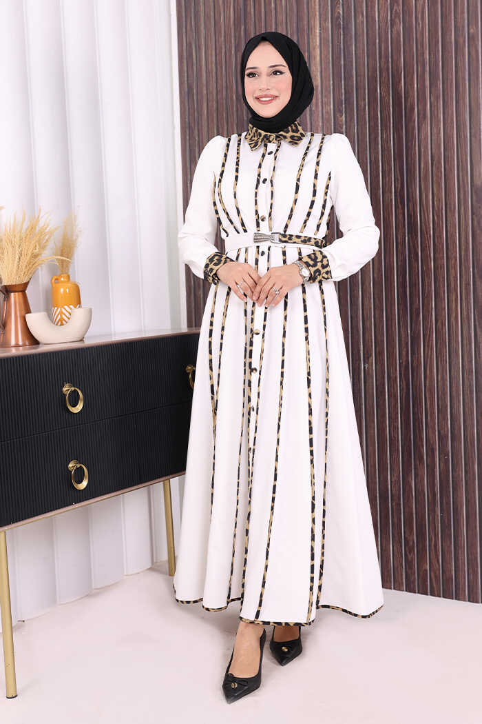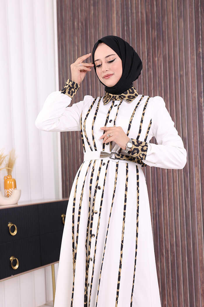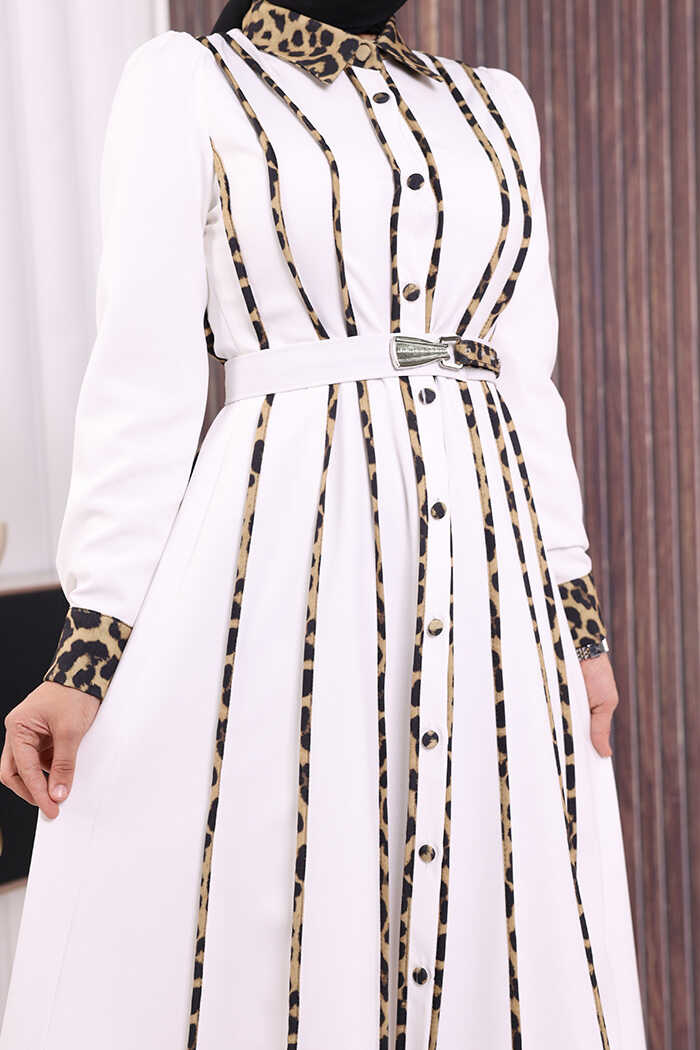 LEOPAR BİYELİ KEMERLİ ELBİSE:
