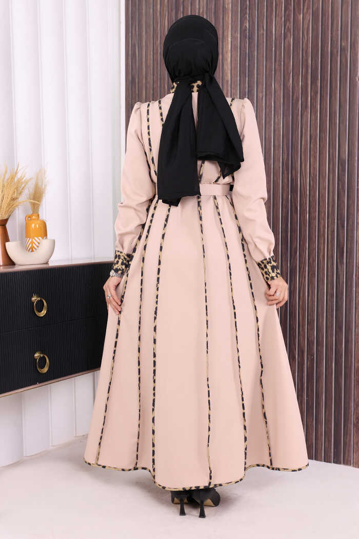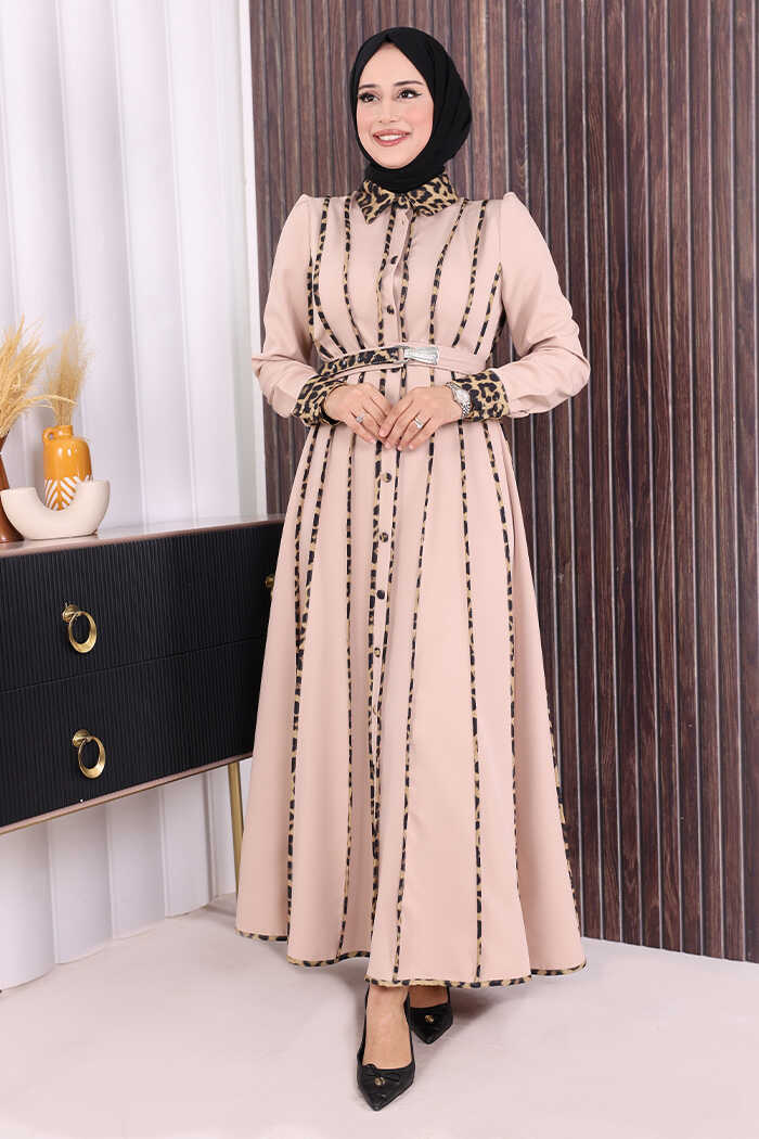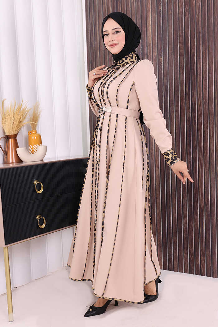 Leopar Biyeli Kemerli Elbise 3930 Taş