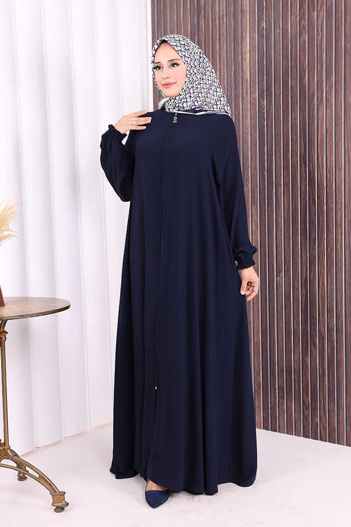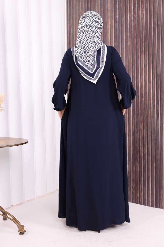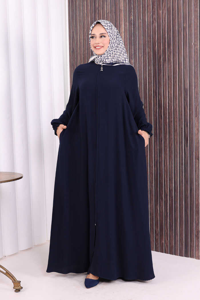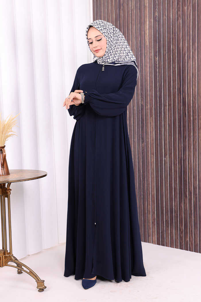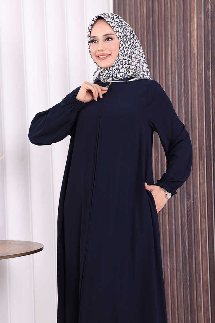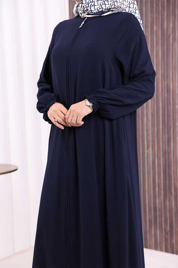 Fermuarlı Kol Manşetleri Büzgülü Mevlana Ferace 6007 Lacivert