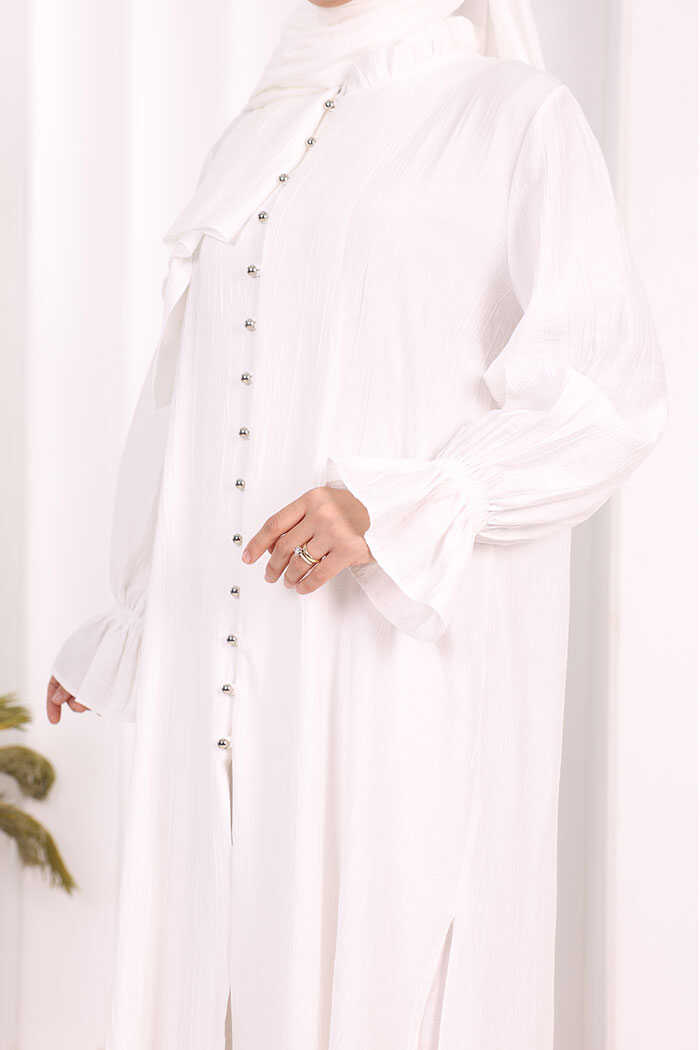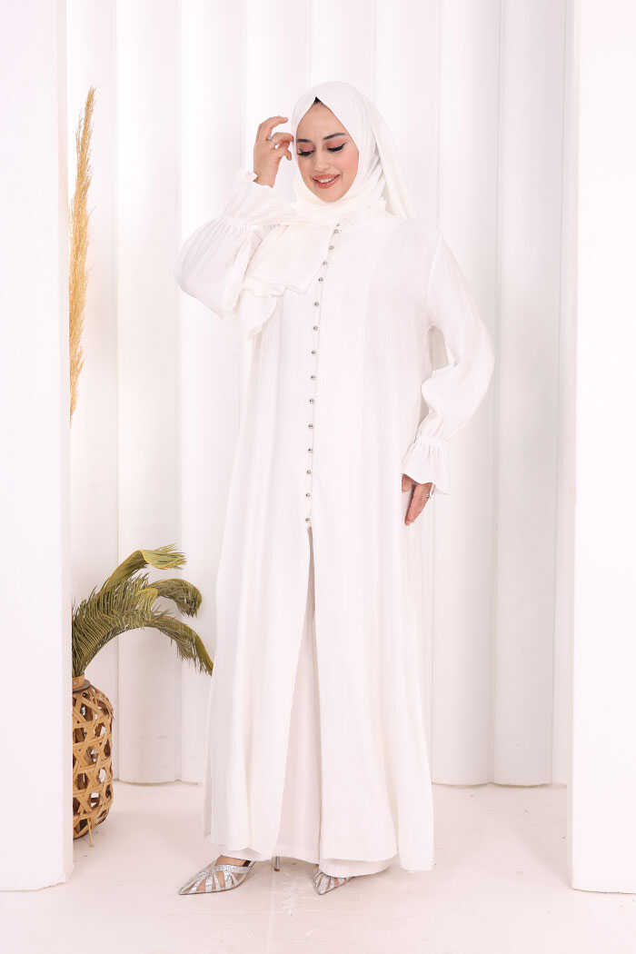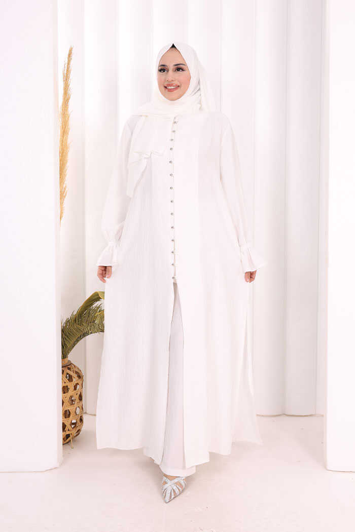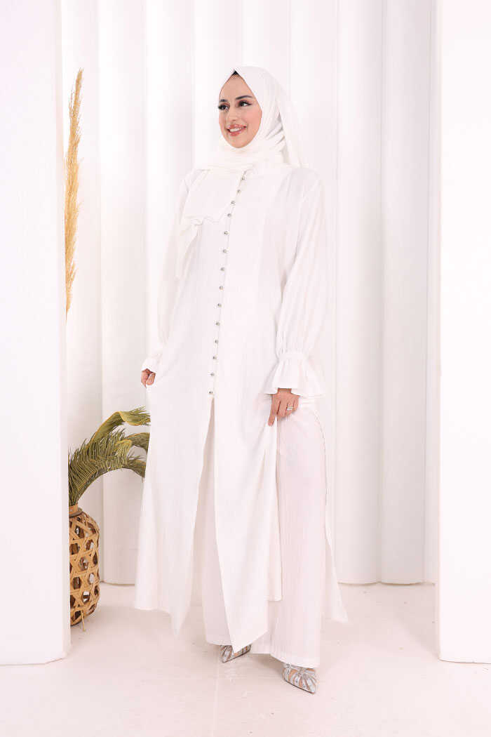 Hac Umre Takım Önü Düğmeli Tunik,Pantolon ŞAL HEDİYE 8014 Ekru