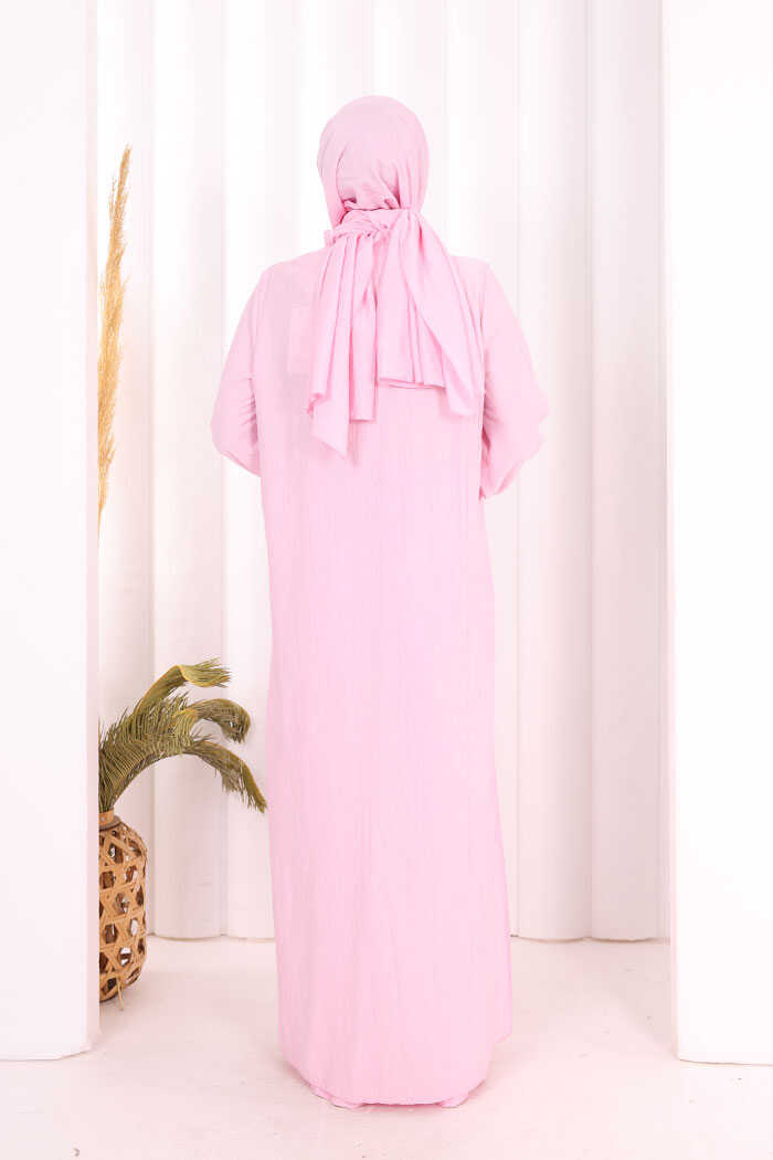Hac Umre Takım Önü Düğmeli Tunik,Pantolon ŞAL HEDİYE 8014 Pembe