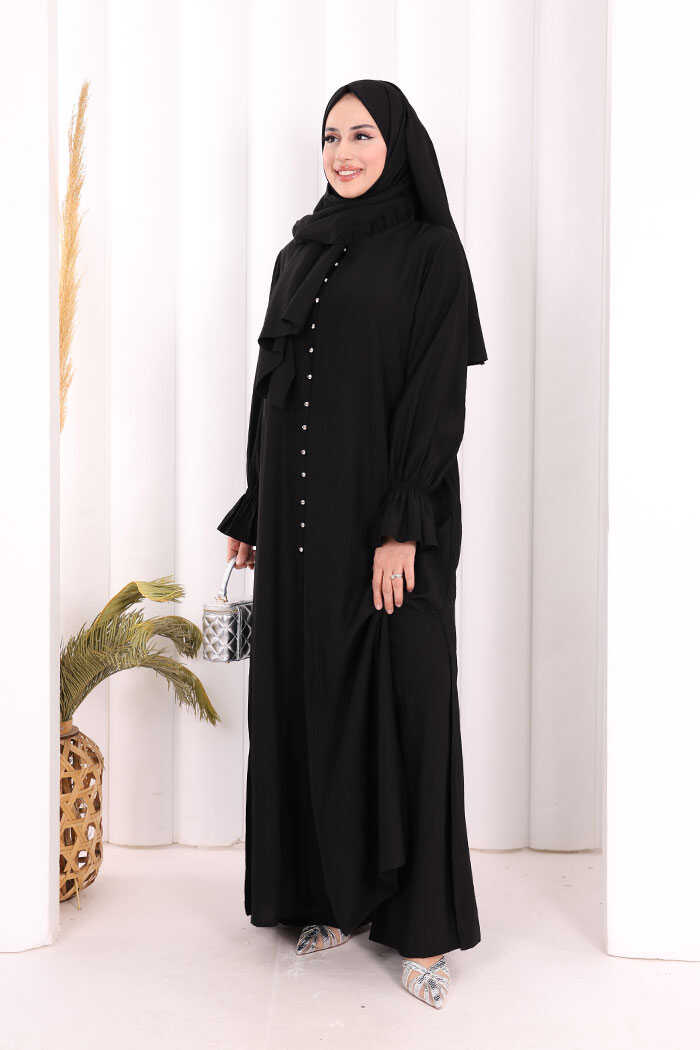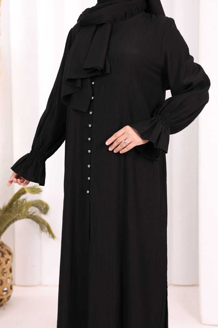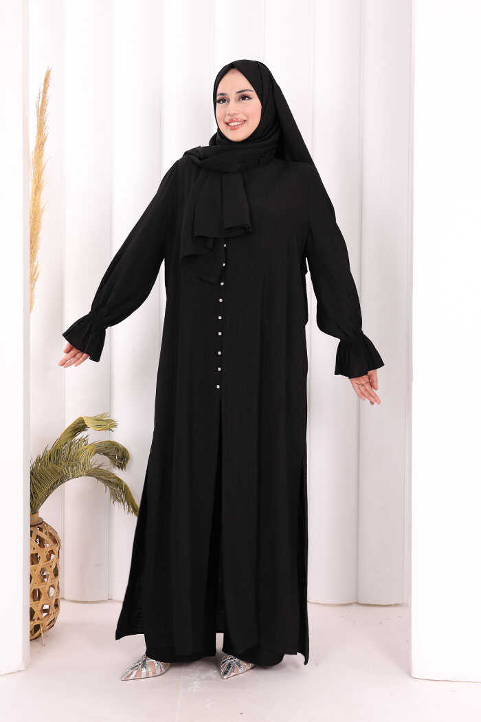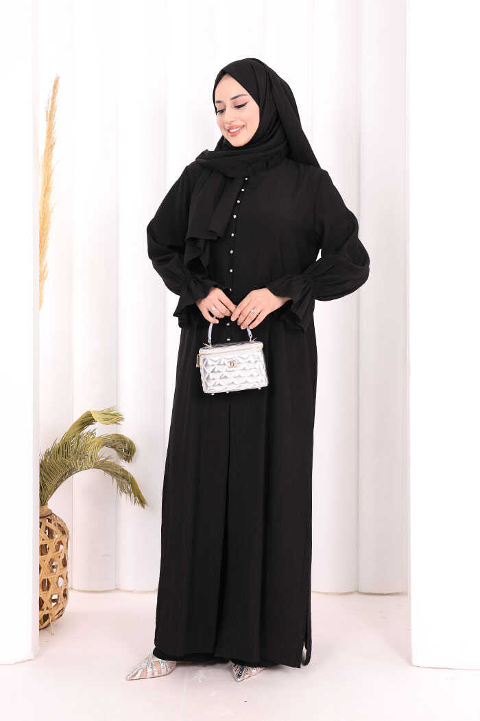 Hac Umre Takım Önü Düğmeli Tunik,Pantolon ŞAL HEDİYE 8014 Siyah