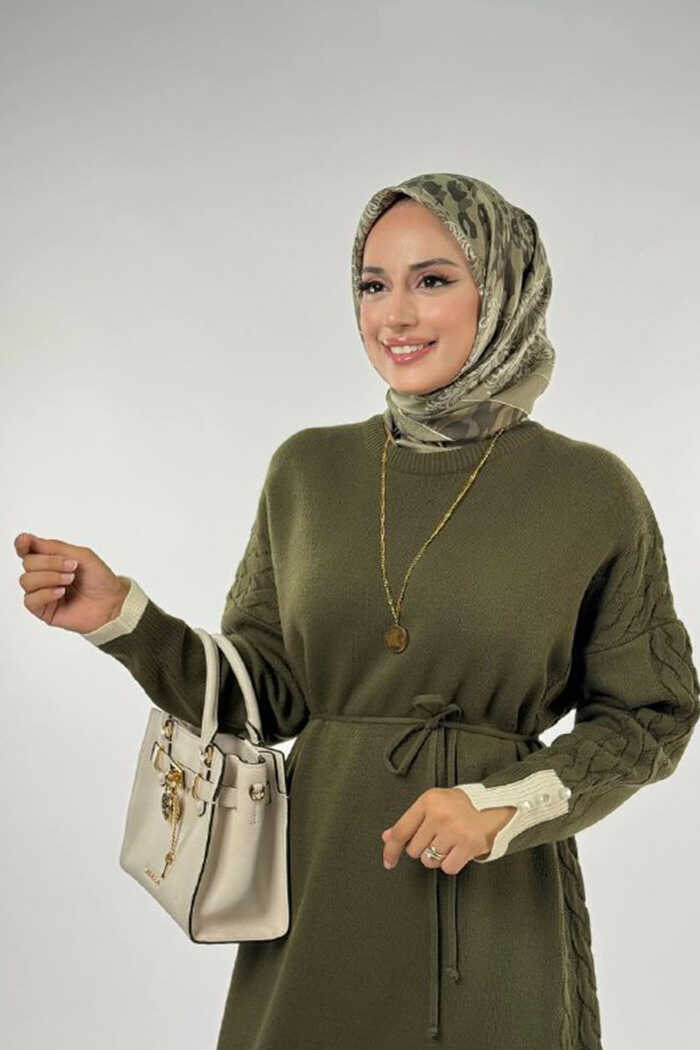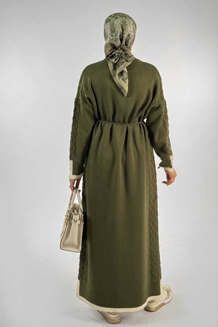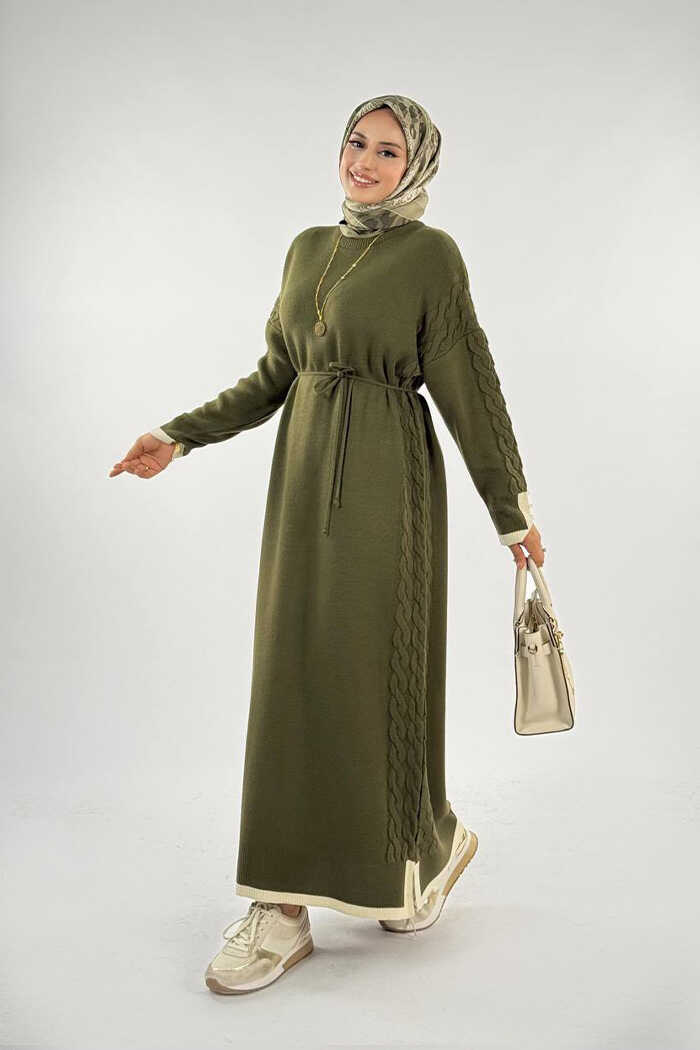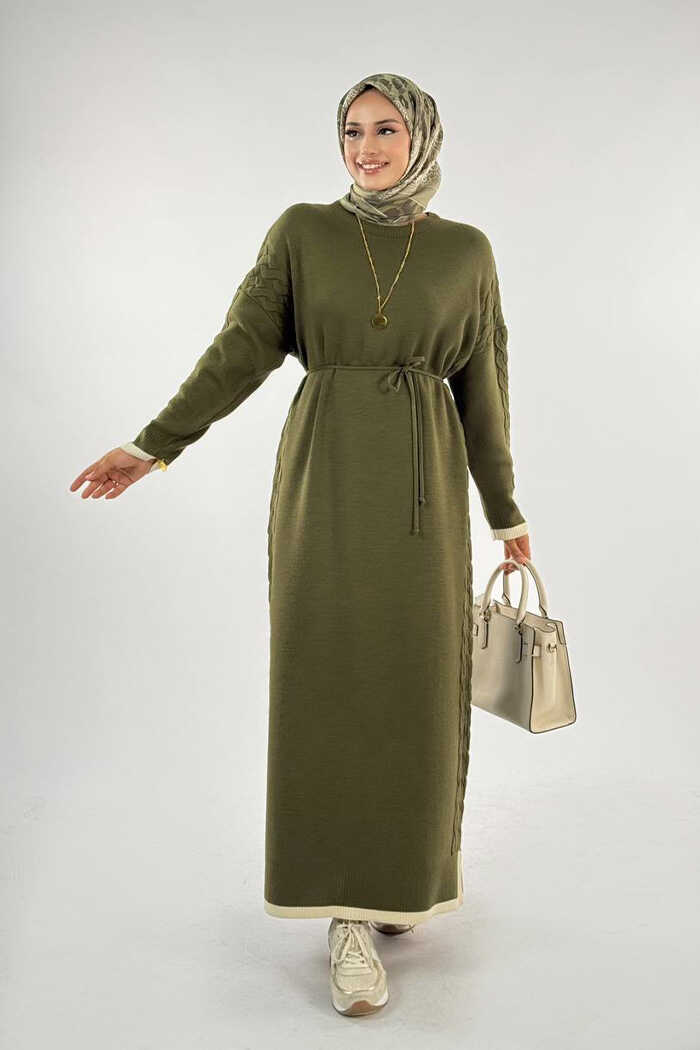 Örgü Detay Triko Elbise 18312 Haki
