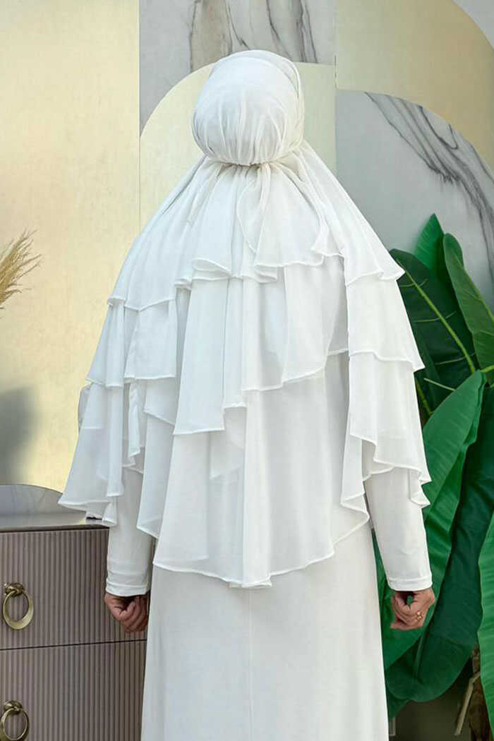 Peçeli 3 Katlı Şifon Sufle Şal 6012 Ekru