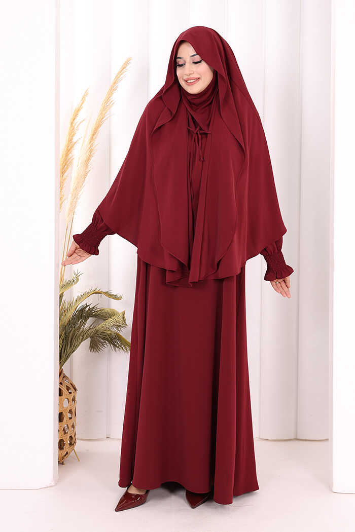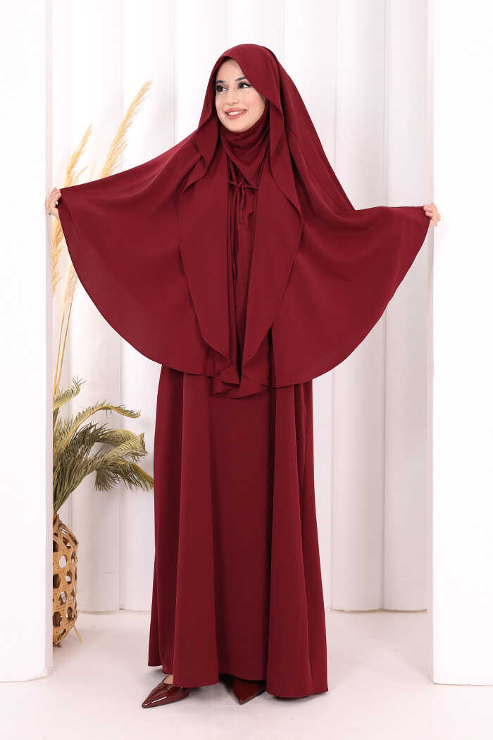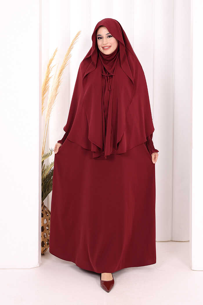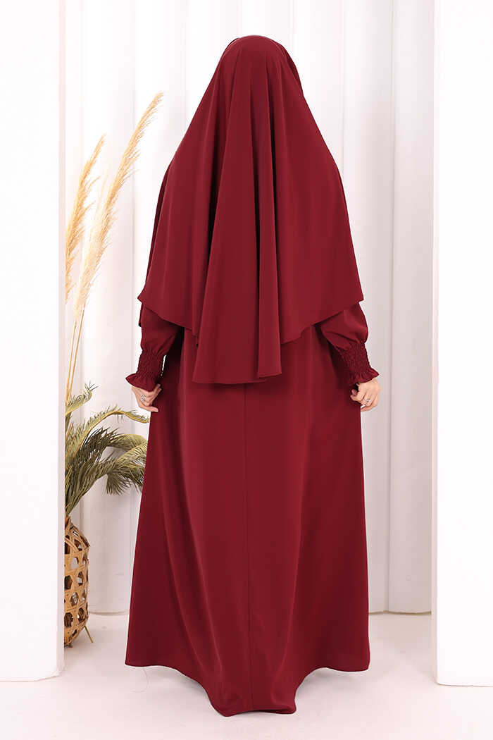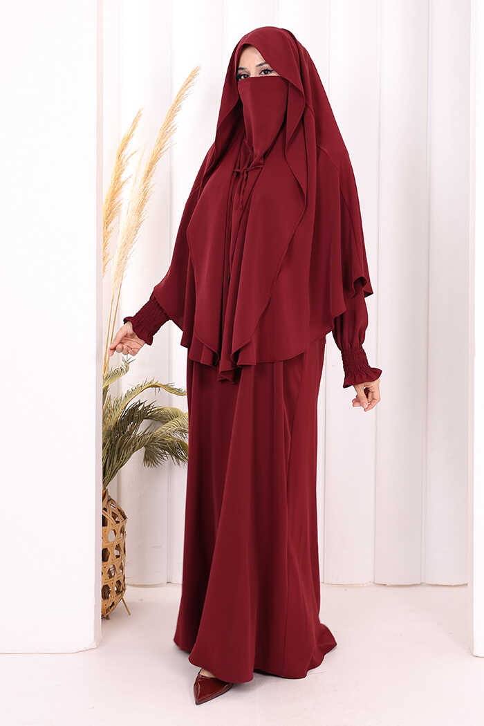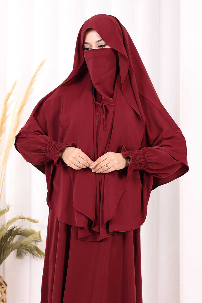 Peçeli Cilbab Model Elbise 6063 Bordo