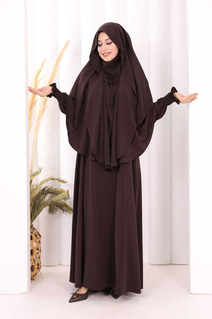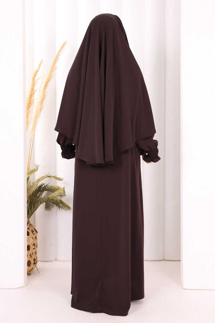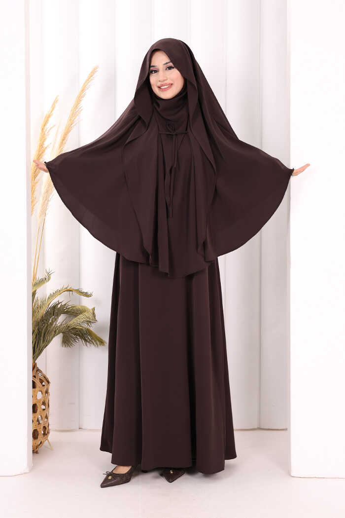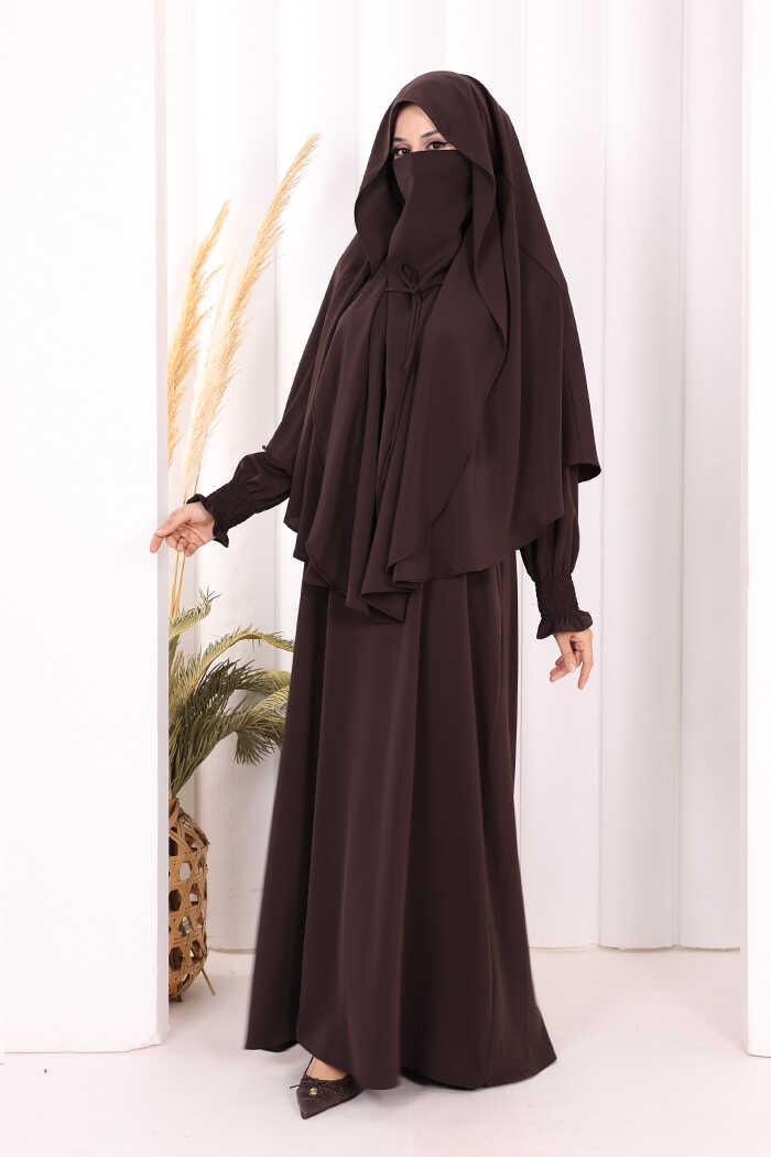 Peçeli Cilbab Model Elbise 6063 Kahverengi