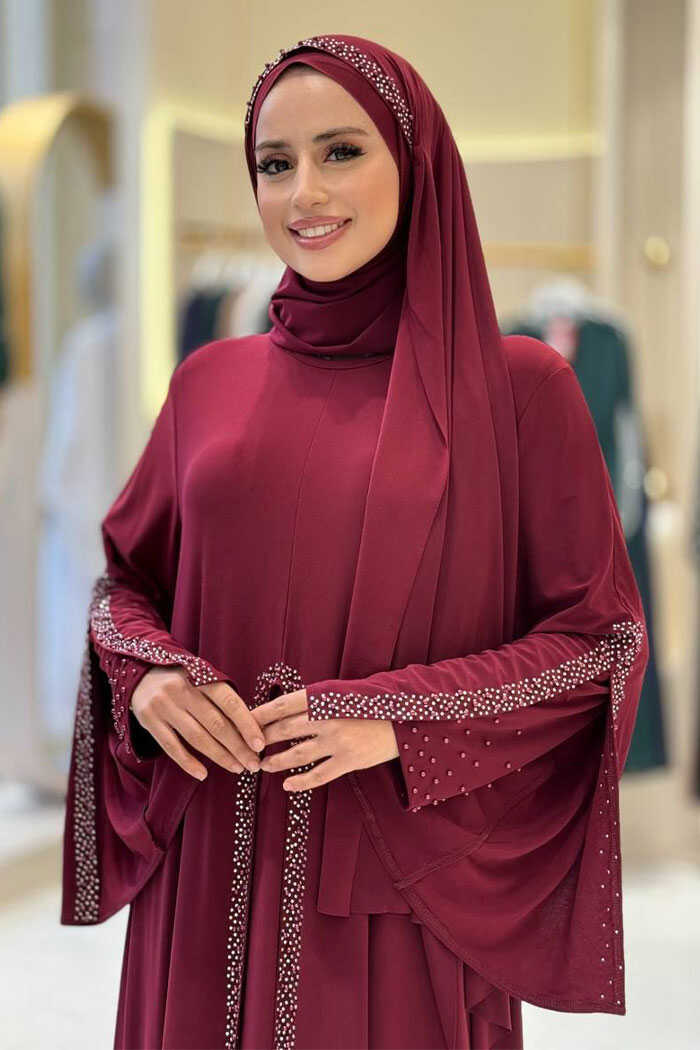 Pelerin, Elbise ve Şal Üçlü Takım 3932 Bordo
